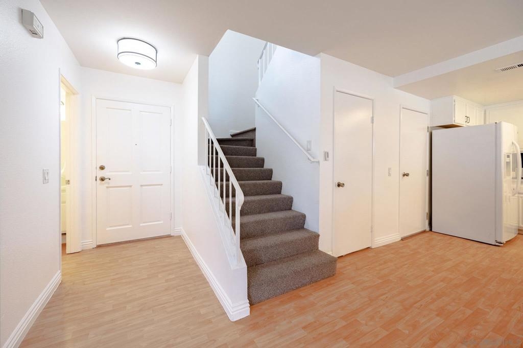 Lovely townhome in the highly sought-after Canyon Colony community! Peacefully situated in the heart of Mira Mesa, this 2 bed 2.5 bath home with comfortable, freshly painted interior. Just off the entryway, find a main-level half bath, a spacious living room with fireplace, & a glass door to a serene patio space. Lots natural light throughout! Cute white kitchen w/ updated white quartz countertops and extra bar seating. Dual master suites and laundry are all upstairs. Easy freeway access and close to shopping and restaurants. Equipment: Dryer, Washer Sewer: Sewer Connected Topography: LL