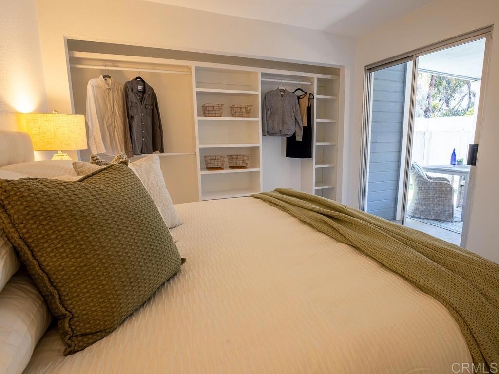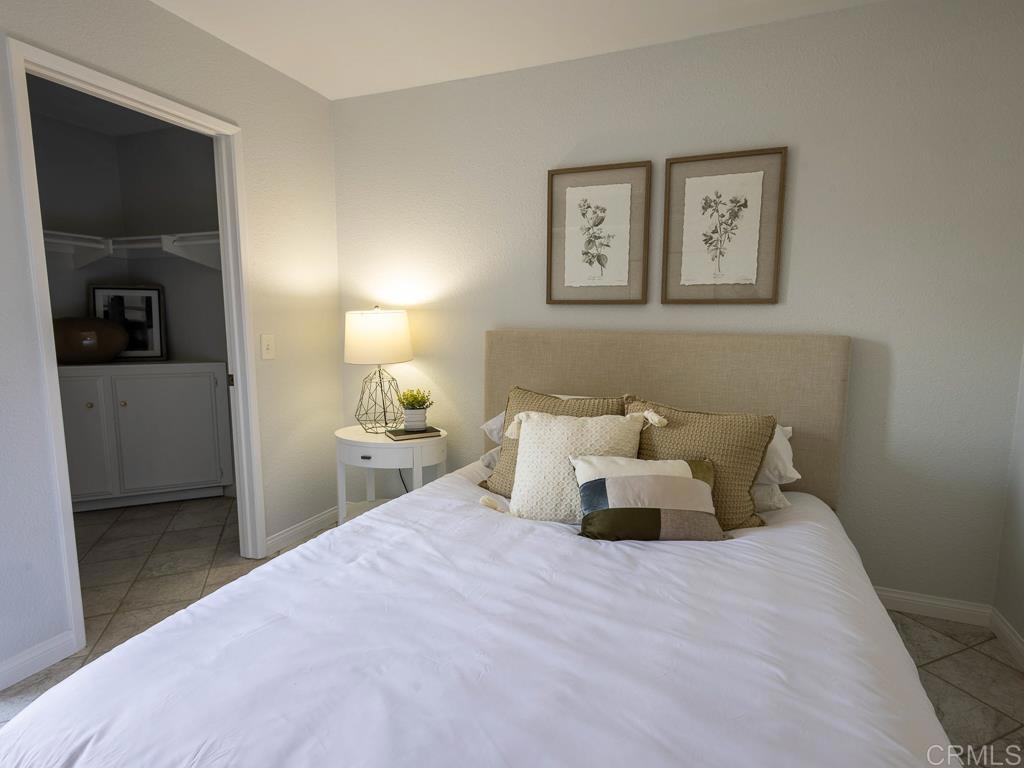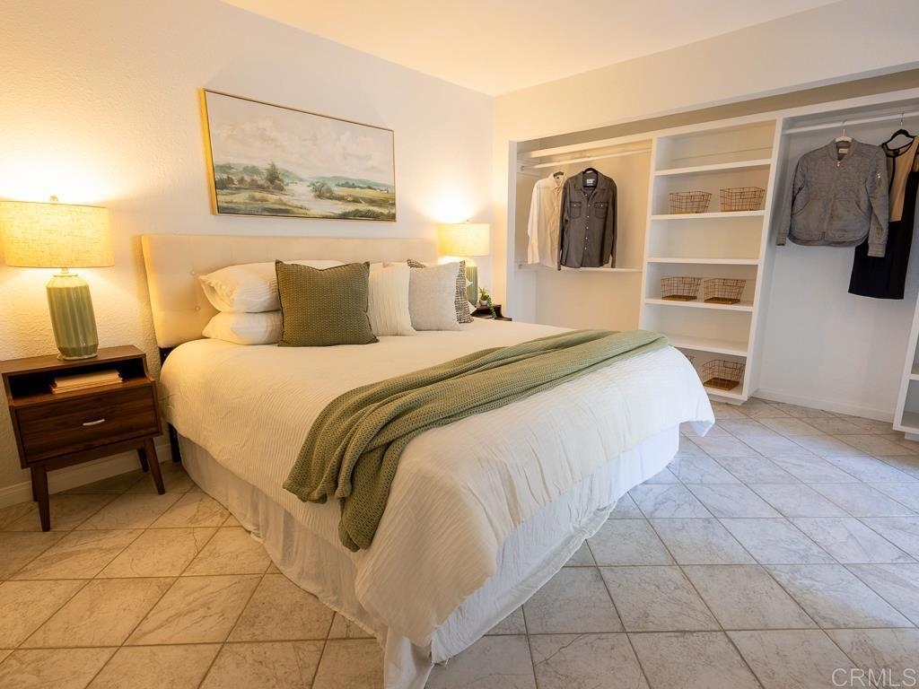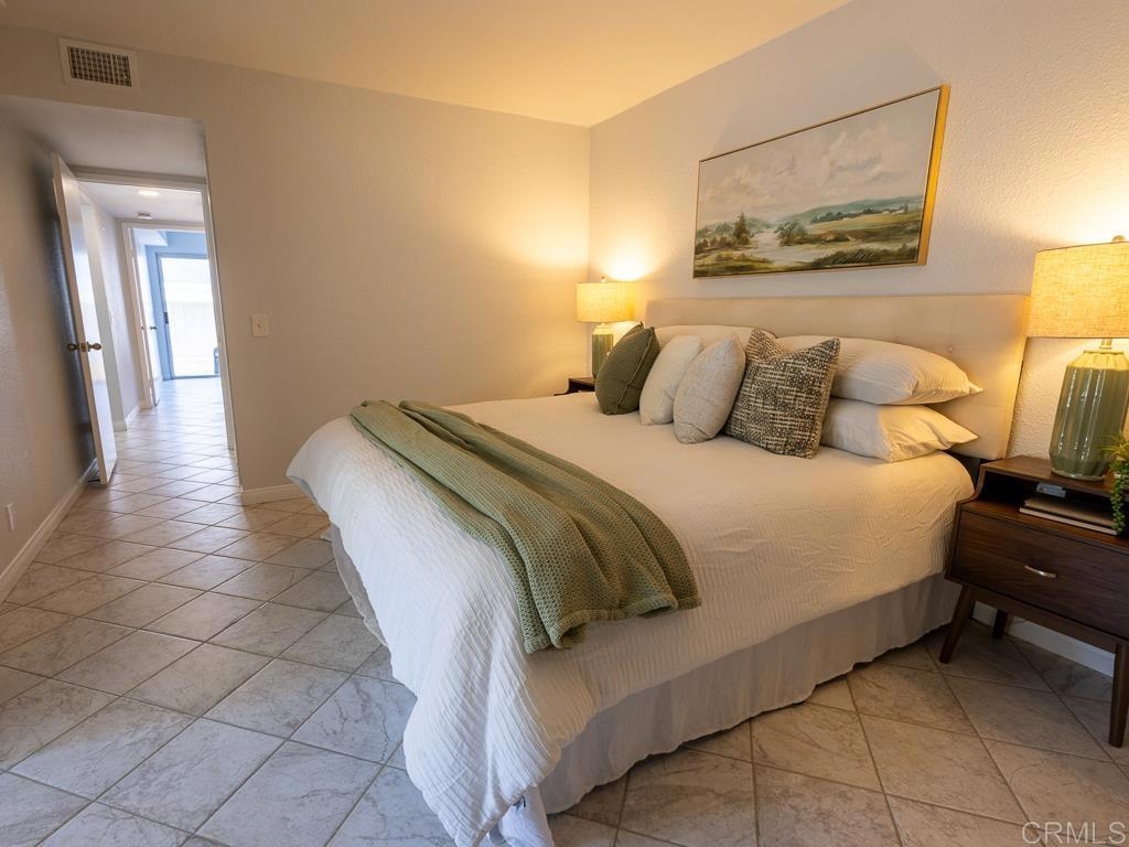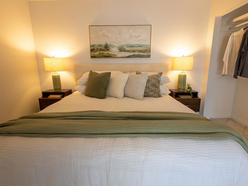 Beautiful, tastefully decorated move-in ready condo with two primary bedrooms/bathrooms. The bedrooms are separated by a hallway that provides privacy between the bedrooms. Features all new appliances, new washer and dryer, and a new water heater. The whole unit has been modernized with a remodeled kitchen, remodeled bathrooms, tile floors throughout, and recessed lighting with LED lights. The whole unit was recently painted, so everything is clean and pristine. The kitchen features quartz counter tops and ample counter space for creating your favorite dish in the kitchen. The living room is comfortable and provides space for entertaining. One bathroom has a soaker tub. Each bedroom has a small courtyard patio. The unit comes with a full size garage, an additional parking space, and a storage closet. Easy freeway access and convenient location.The unit has air conditioning. Water is included in the HOA fee.