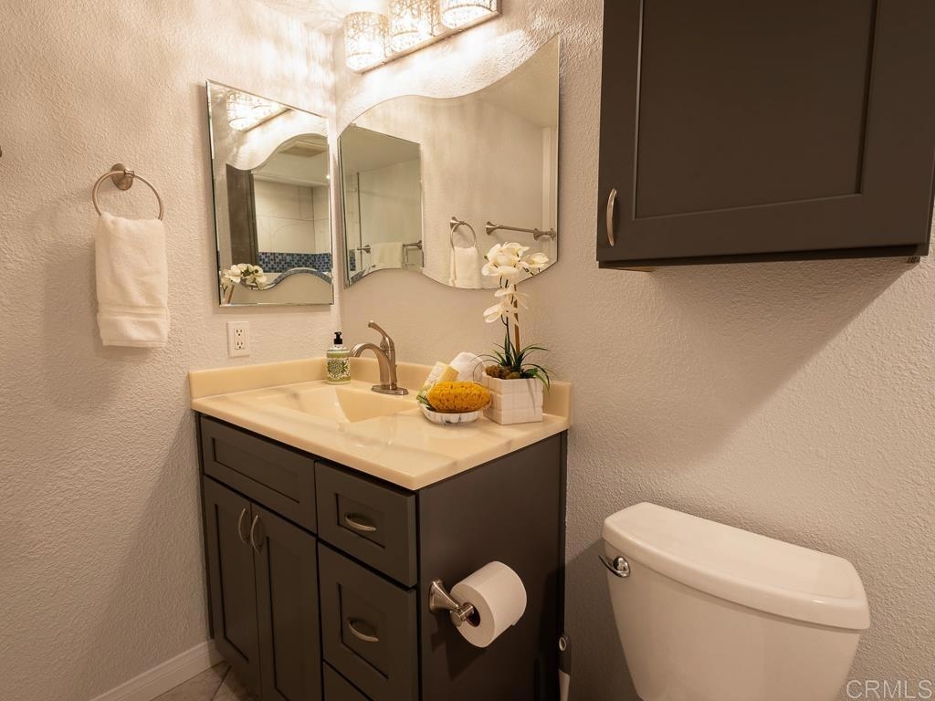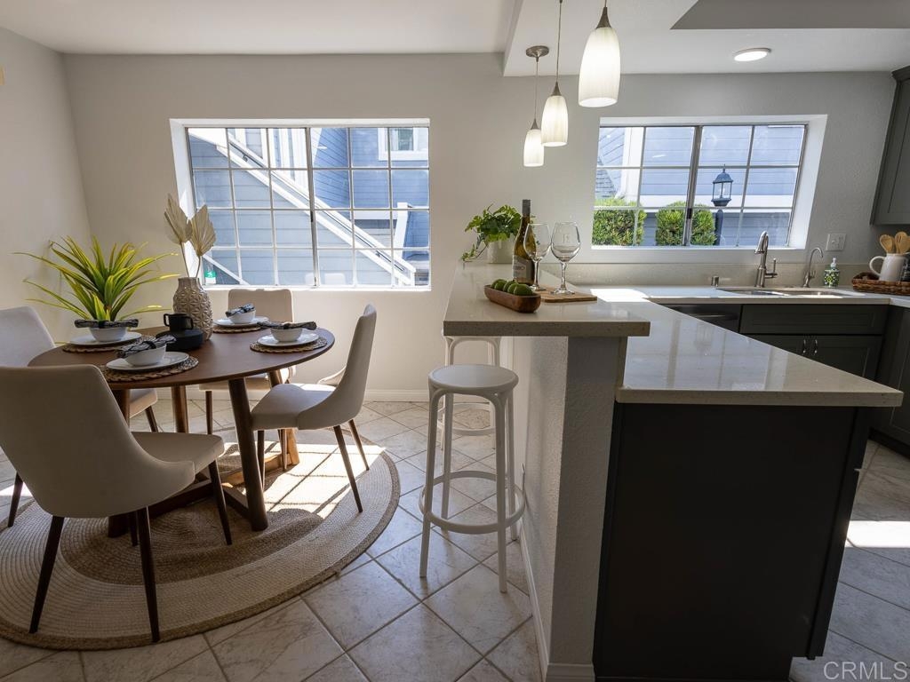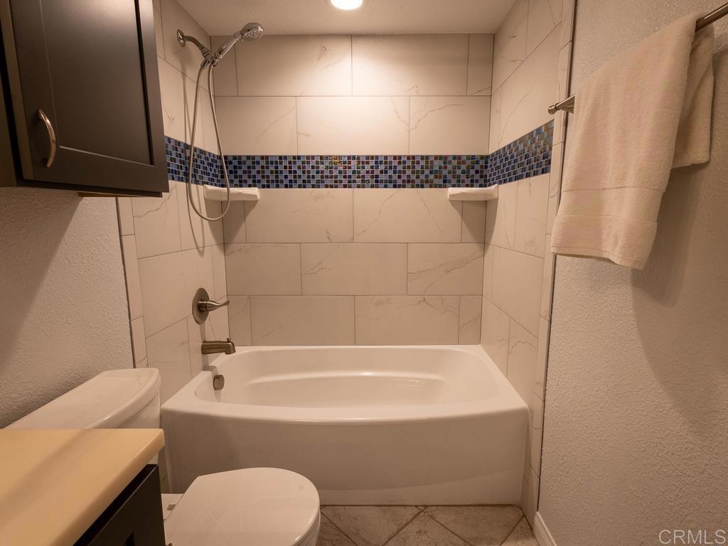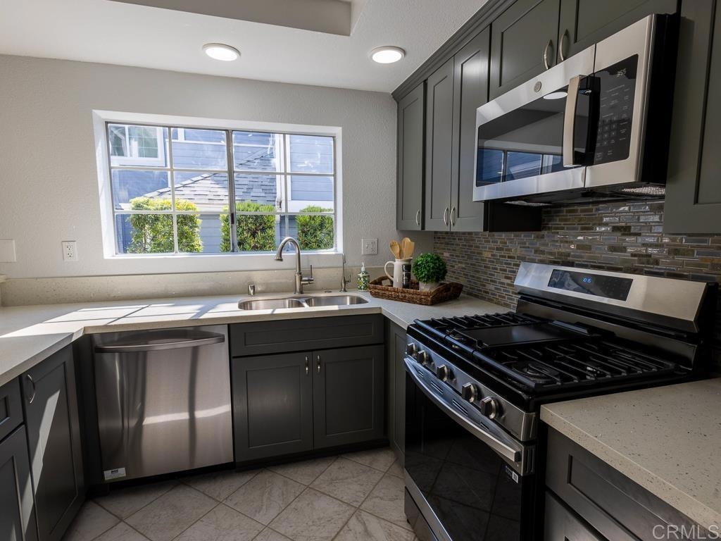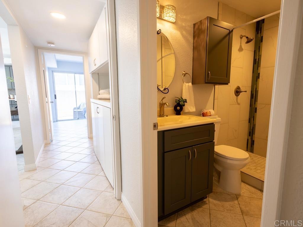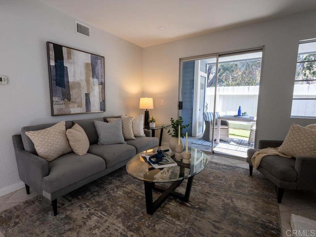 Beautiful, tastefully decorated move-in ready condo with two primary bedrooms/bathrooms. The bedrooms are separated by a hallway that provides privacy between the bedrooms. Features all new appliances, new washer and dryer, and a new water heater. The whole unit has been modernized with a remodeled kitchen, remodeled bathrooms, tile floors throughout, and recessed lighting with LED lights. The whole unit was recently painted, so everything is clean and pristine. The kitchen features quartz counter tops and ample counter space for creating your favorite dish in the kitchen. The living room is comfortable and provides space for entertaining. One bathroom has a soaker tub. Each bedroom has a small courtyard patio. The unit comes with a full size garage, an additional parking space, and a storage closet. Easy freeway access and convenient location.The unit has air conditioning. Water is included in the HOA fee.