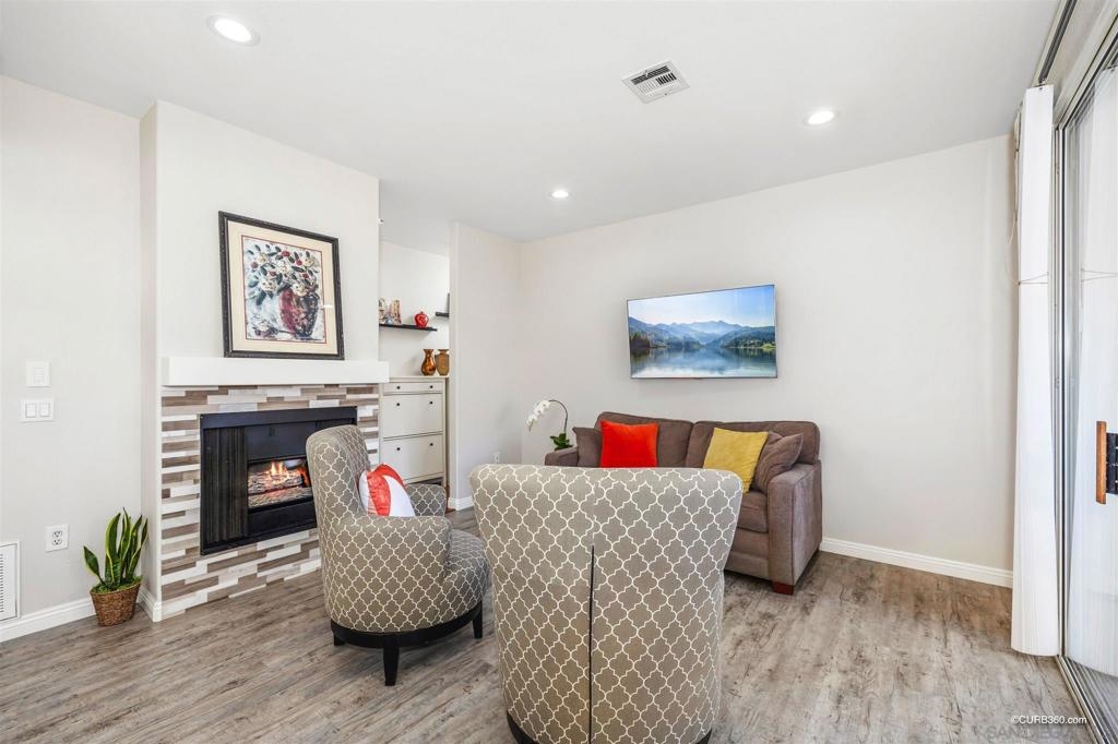 End unit lower level 2 bed/2 bath stunning Mira Mesa condo upgraded from floor to ceiling. This beautiful residence features dual master ensuites, high ceilings, 2-outdoor patios and both kitchen and bath complete remodel with custom designed modern cabinetry, quartz countertops, porcelain tiled showers, stainless appliances, laminate wood flooring, custom interior paint, ceiling fans, fixtures, custom window shades, custom closets and LED recessed lighting. This unit is located in the most desired location in all the community positioned against the furthest north side of the complex with no neighbors to the side. This completely move in ready unit includes 2-secured covered parking spaces, full size washer/dryer, fireplace, central a/c and forced air heating. Mirabella, a private gated community features pool/spa and exercise room surrounded by lush landscaped grounds. Centrally located nearby community parks, shopping, dining and schools. Complex Features: ,,, Equipment: Dryer, Washer Other Fees: 0 Sewer: Sewer Connected Topography: LL