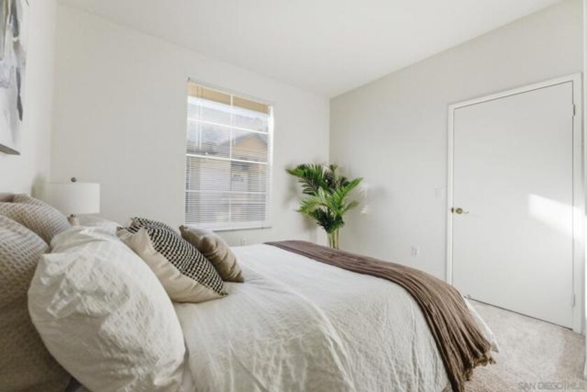 Welcome to Mirabella in Mira Mesa, a beautifully maintained, light-filled residence offering comfort, convenience, and resort-style living in one of San Diego’s most central locations. This move-in-ready one-bedroom, one-bath home features 581 square feet of thoughtfully designed living space with a bright, open layout that flows effortlessly from the living area into the dining and kitchen spaces. The kitchen offers generous cabinetry and counter space, while large windows fill the home with natural light, creating a warm and inviting atmosphere. The spacious primary bedroom includes ample closet space and easy access to the full bathroom. Step outside to your private balcony, the perfect place to enjoy morning coffee or unwind in the evening. The home also features a newer air conditioning system installed in 2022 for year-round comfort. Residents of the Mirabella community enjoy a sparkling pool, clubhouse, and community center, all set within beautifully landscaped grounds. The low HOA of only $420 per month adds to the home’s appeal and value. Adding to the lifestyle advantage, the Mira Mesa Community Park across New Salem Street is undergoing major City improvements that will include a new aquatic complex, an all-wheels plaza, upgraded recreation facilities, new play areas, and multi-use courts. Ideally located near I-805 and I-15 with easy access to Sorrento Valley, UTC, La Jolla, shopping, dining, and major employers, this is an exceptional opportunity for first-time buyers, investors, or anyone seeking low-maintenance living in a prime San Diego location.
