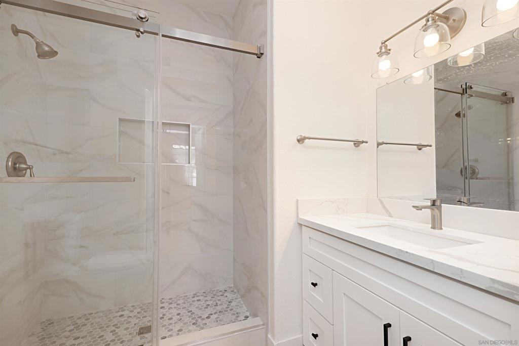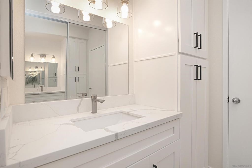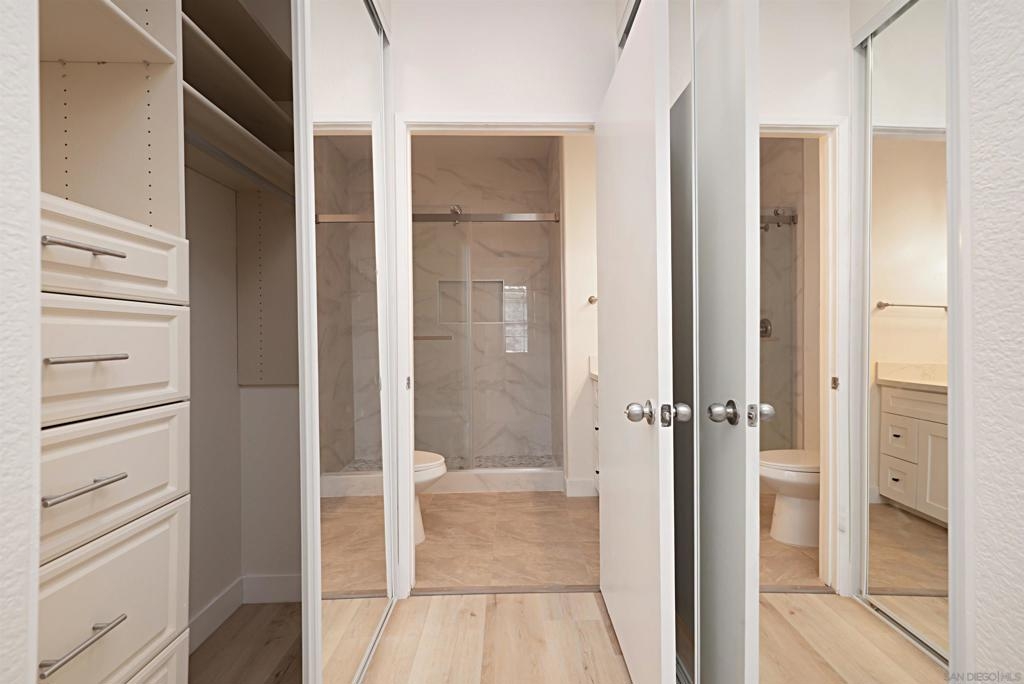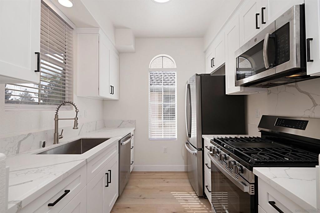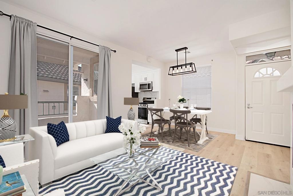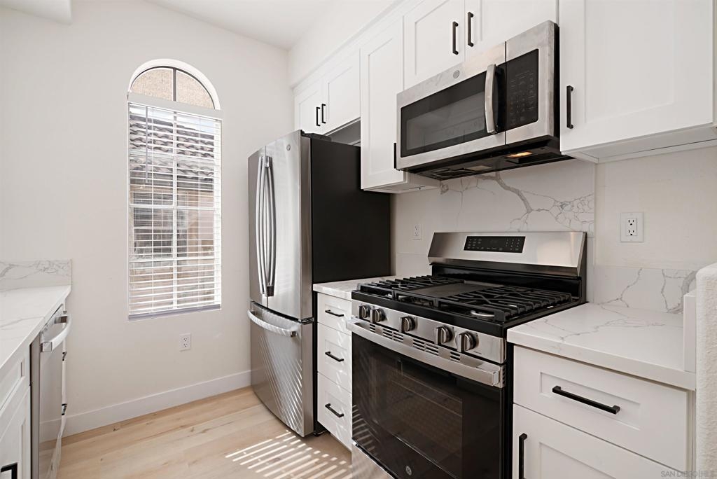 Immaculate remodeled condo featuring a brand-new kitchen with sleek cabinets, new GE appliances, and stunning finishes. Luxury vinyl flooring extends throughout, upgraded light fixtures and added recessed lighting for a bright, welcoming ambiance. Fresh paint throughout for a polished and updated look, Both bathrooms have been fully transformed with designer touches, new mirror closet doors, plus NEW full size washer and dryer complete this move-in-ready home. Spacious private patio facing open space with pool view. Gated underground 2 parking spaces. You will instantly feel at home in this Mirabella beauty nestled in the heart of Mira Mesa, this delightful, second-floor unit with dual bedroom suites is a must-see! Combining style, comfort, and a prime location, this condo is just steps away from the lively lifestyle of the neighborhood. As you enter this home, you will fall in love with the bright and spacious great room that opens to a charming patio perfect for unwinding with its view of the sparkling pool. The kitchen is equipped with all new GE stainless-steel appliances, elegant quartz countertops, extensive white soft closing cabinetry and an adjacent dining area for effortless entertaining. The first primary suite is a true retreat, spacious and flooded with natural light, it features an ensuite brand new bathroom, custom built in closets with mirrior doors. The 2nd new primary suite is equally inviting and perfect for guests with ensuite bathroom, or used as an office or extra living space. Gated Mirabella community features Pool, Spa, Fitness. virtually staged