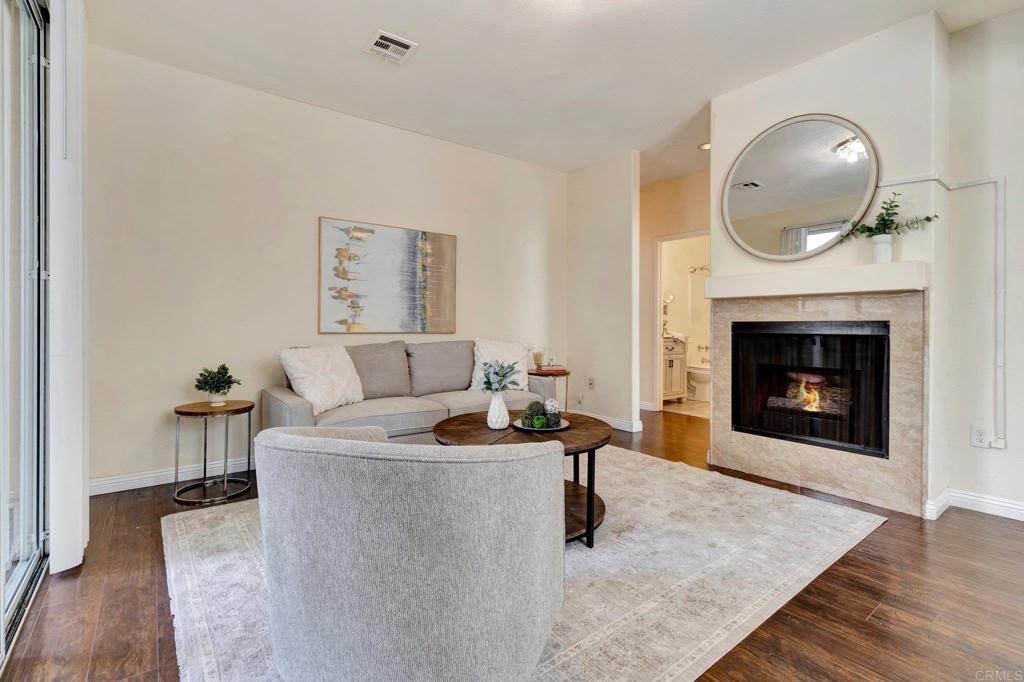 Step into this beautifully maintained 2-bedroom, 2-bath condo that effortlessly blends comfort and convenience. Located in a desirable community with resort-style amenities, this home offers the ideal setting for relaxed Southern California living. Enjoy cozy evenings by the charming fireplace in the open-concept living room, or whip up your favorite meals in the well-appointed kitchen with ample counter space and storage. The spacious primary suite features a private en-suite bath and generous closet space, while the second bedroom is perfect for guests, a home office, or both. Unwind on your private balcony or take advantage of the community amenities including a sparkling pool, spa, & fitness center. With in-unit laundry, 2 assigned parking spaces, and a prime location close to shopping, dining, and freeway access, this home has everything you need and more. This condo is a rare find. Come see it today and imagine yourself living the easy, breezy lifestyle you deserve!