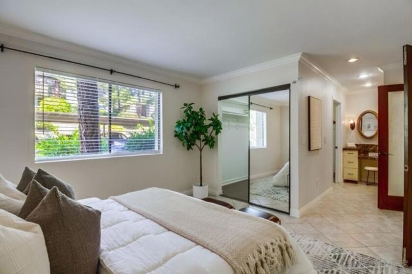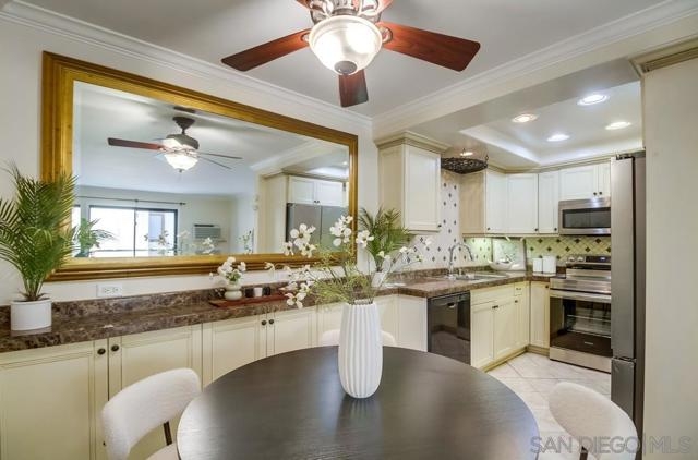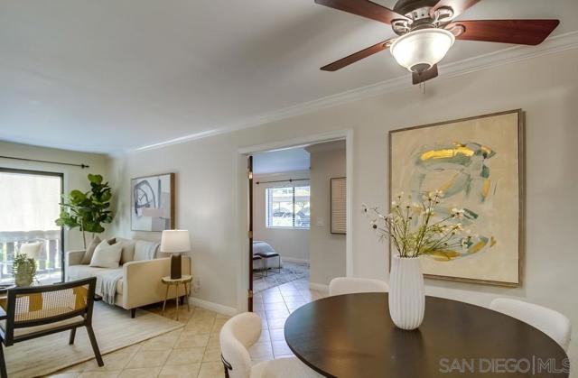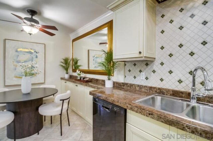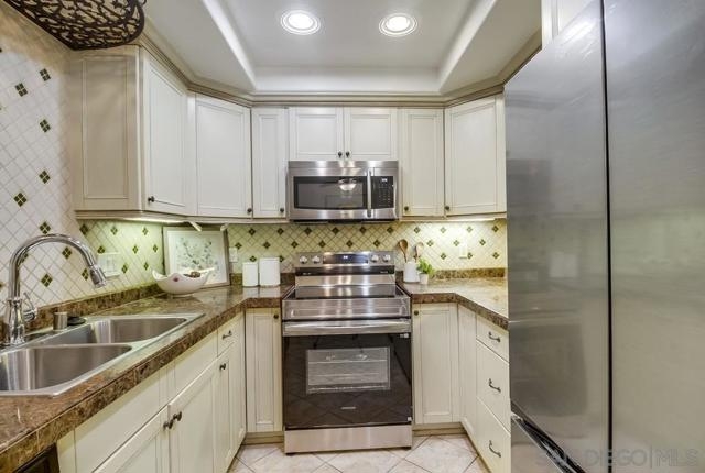 Welcome to Quail Creek Mira Mesa! This bright and spacious ground-floor unit features an open floor plan and beautiful tile flooring throughout. The gourmet kitchen boasting custom-built cabinets lining every wall for ample storage, marble countertops, tile backsplash, and brand-new stainless steel appliances, including a refrigerator, stove, and microwave. The bedroom includes a walk-in closet. Step outside to a private, covered patio with additional storage space. The unit comes with two assigned parking space, one is covered, another is uncovered. Enjoy community amenities, including a pool, spa, and tennis court. The location offers easy access to the I-15, schools, Miramar College, and a wide variety of grocery stores, restaurants. Close to Marine Corps Air Station Miramar.