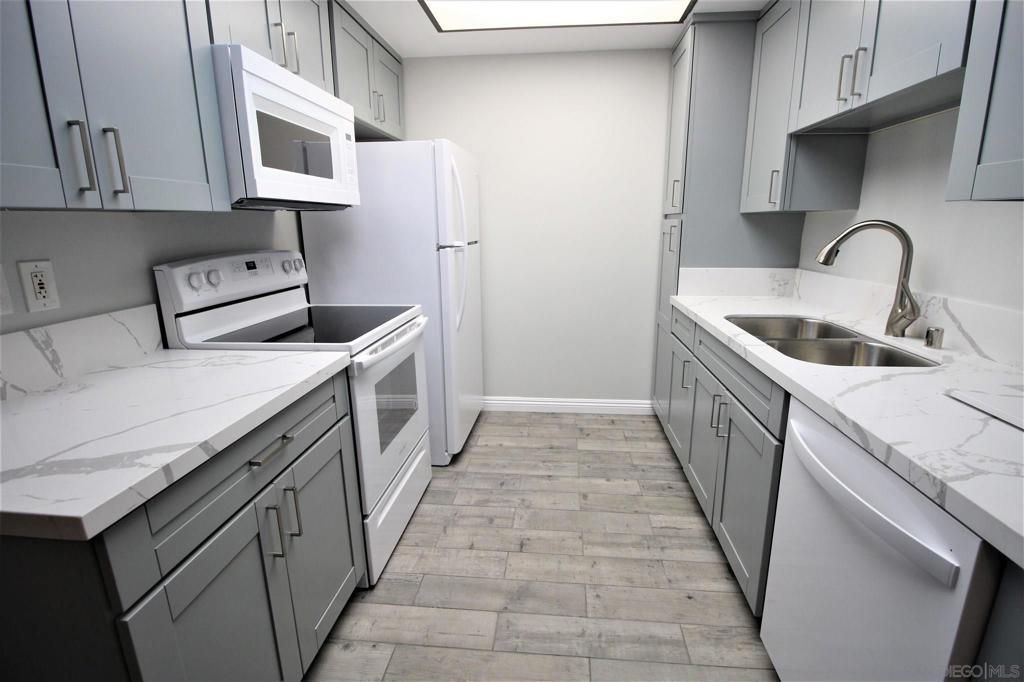 Immaculate Large one bedroom End unit in a private location on first floor.Completely remodeled:New paint,New kitchen and Bathroom,New appliances,Wood floors throughout,Master bedroom had huge walk in closet.New wall AC unit.Recessed lighting.New vanities.Few steps from the community Laundry room and Spa.Across from community park.Complex amenities:Pool and Tennis court.Easy access to Freeway and less than one minute drive to Home Depot,Adwards Movies and shopping centers.. VA buyers welcome! Complex Features: ,,,, Sewer: Sewer Connected Topography: LL