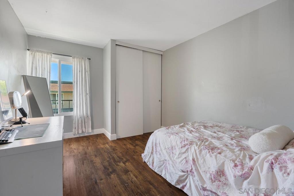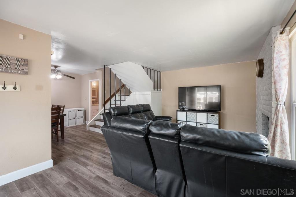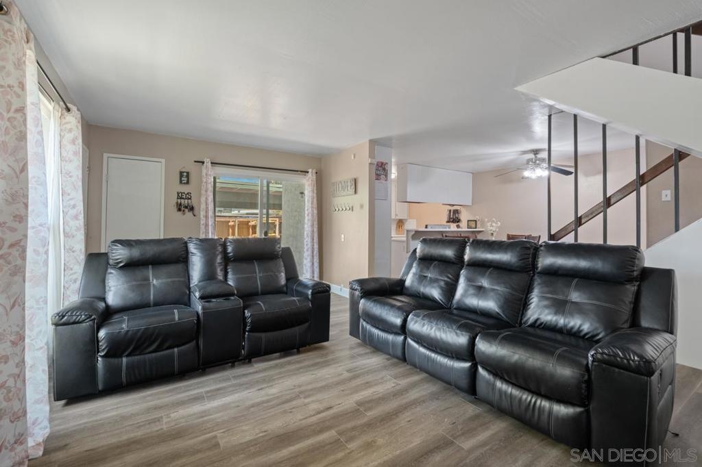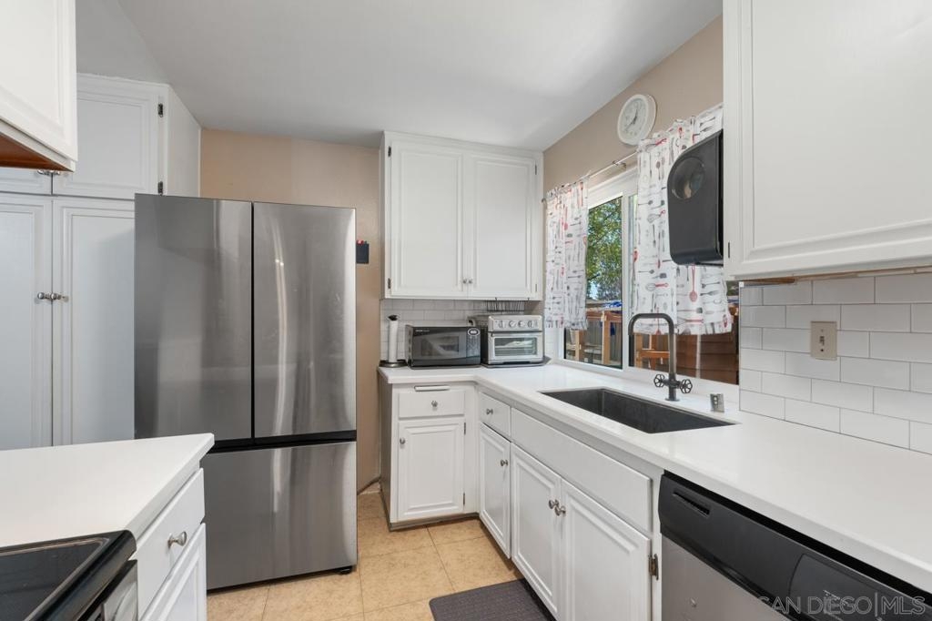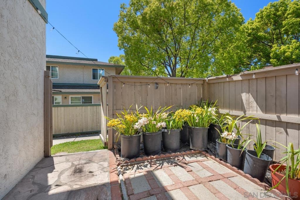 PRICE IMPROVEMENT- Welcome to this upgraded 3-bedroom, 1.5-bath end-unit condo in the peaceful Quest community of Mira Mesa—just minutes from MCAS Miramar. This home is VA loan approved, move-in ready, and priced as the best value in 92126. Designed to live like a detached home, it offers space, privacy, and modern upgrades throughout. Key features include14 fully owned solar panels for long-term energy savings. Newer dual-pane windows and durable wood laminate flooring. Updated kitchen with Corian countertops, quartz composite sink, and stainless-steel appliances. In-unit washer and dryer for added convenience. Private fenced patio—ideal for relaxing, grilling, or a small garden and two assigned parking spaces (one covered). Access to a well-maintained community pool and spa. Located near major freeways, top-rated schools, shopping centers, and restaurants, this home is perfect for military families, first-time buyers, or anyone looking for a turnkey property near base.