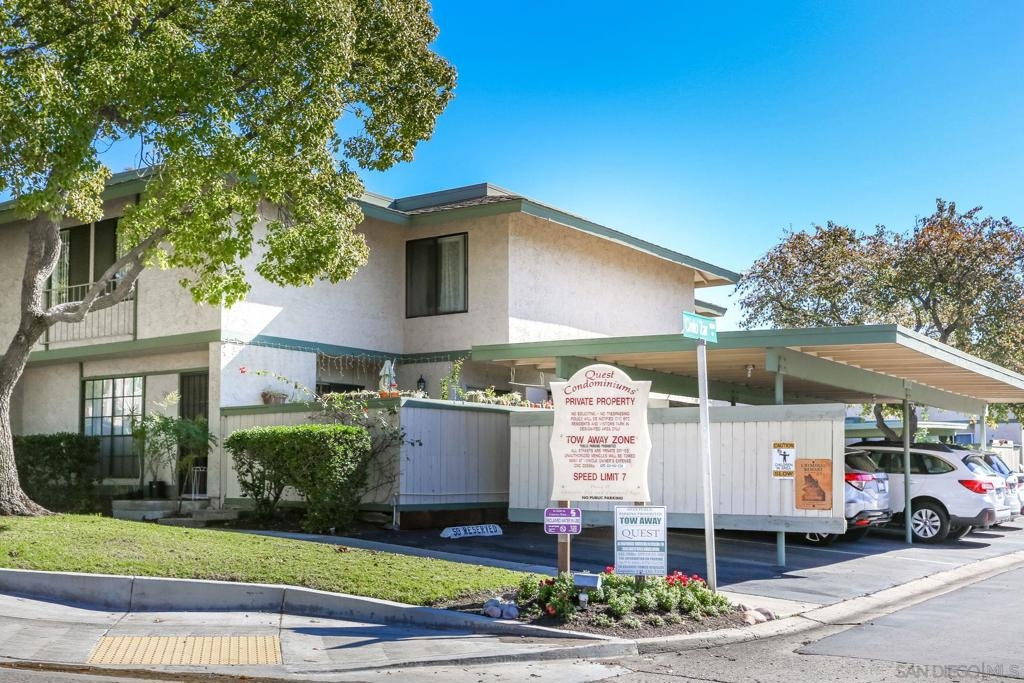 Charming 3 bedroom, 1.5 bathroom, 2 story condo in the Quest Community of Mira Mesa San Diego! Enjoy high ceilings, tile and carpet flooring, and a private outdoor patio. The open kitchen features light, oak wood cabinetry, spacious countertops, and is open to the living room. The upstairs primary bathroom features dual sinks and a shower-in-tub. Additional property highlights include the laundry room, 2 assigned parking spaces, and community amenities of swimming pool and spa. Convenient to area schools. Equipment: Range/Oven Other Fees: 0 Topography: LL