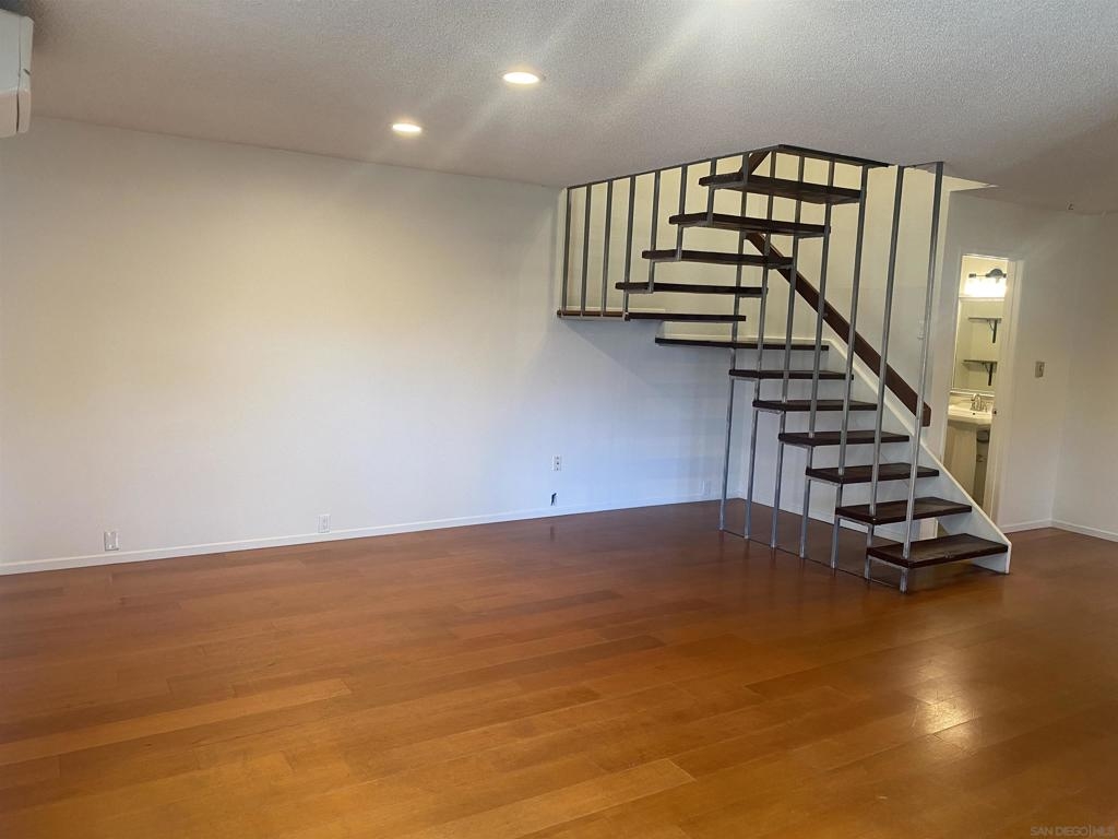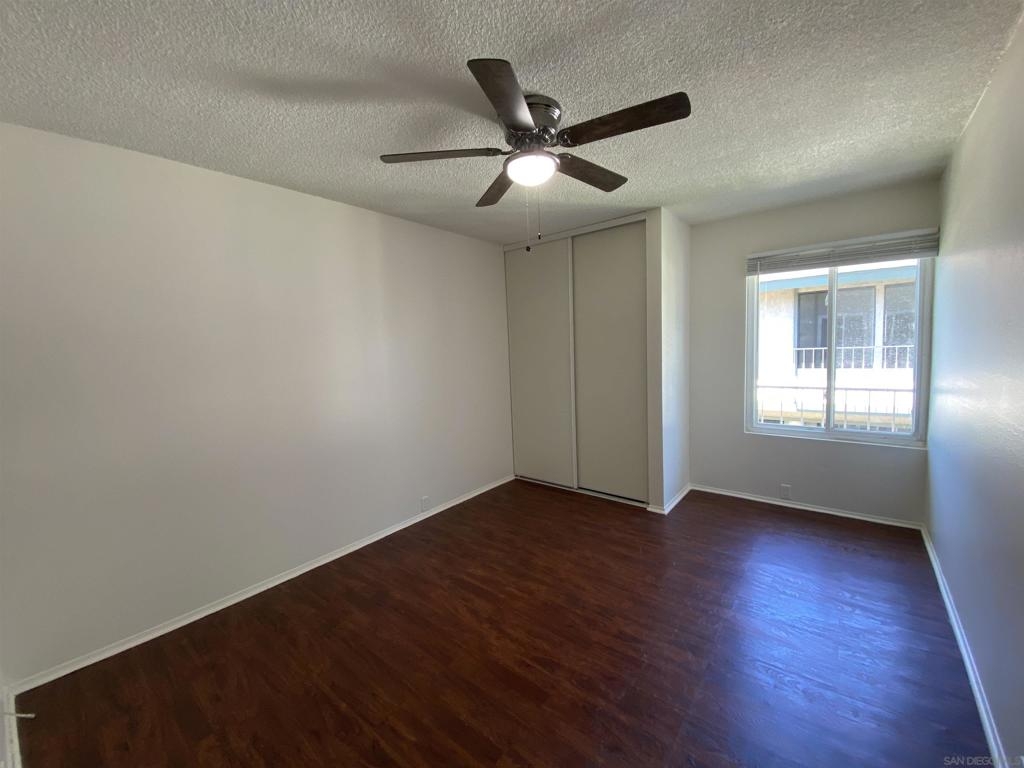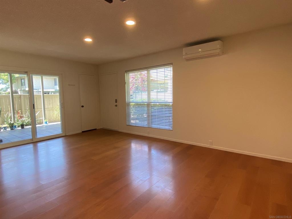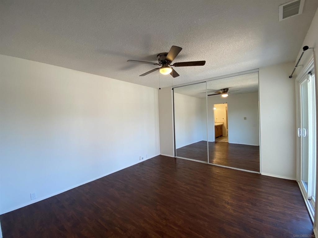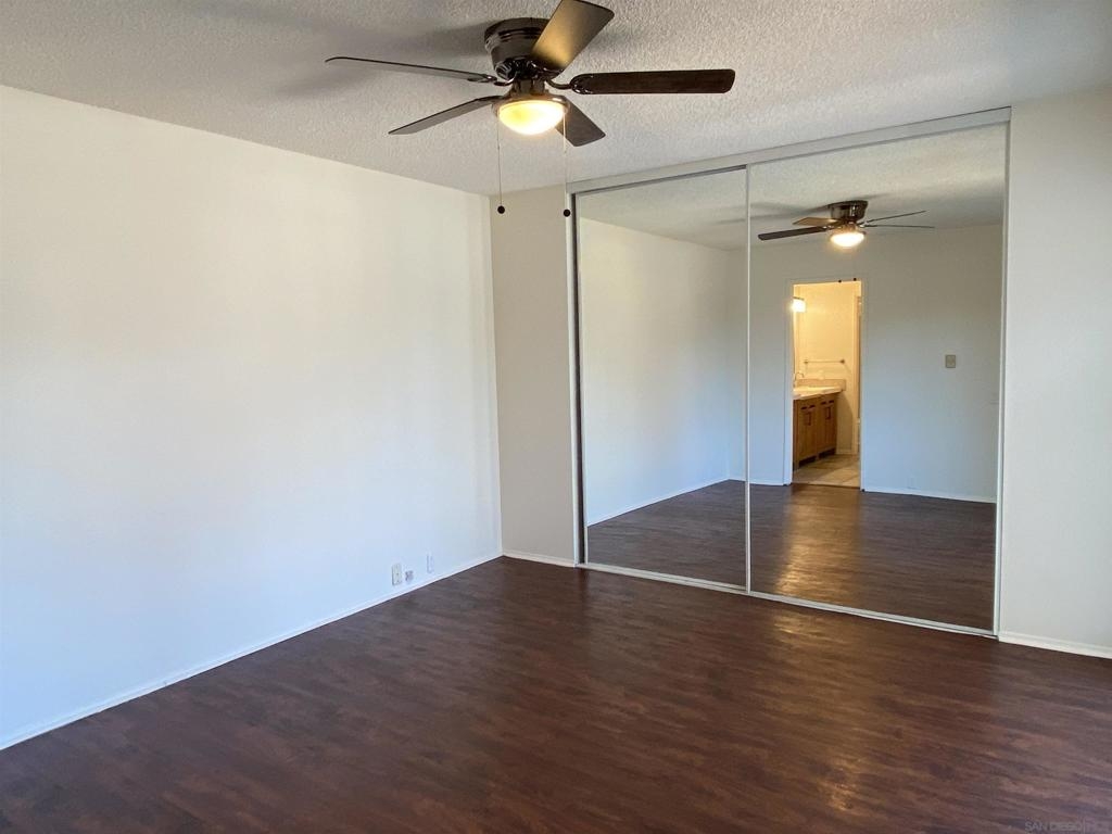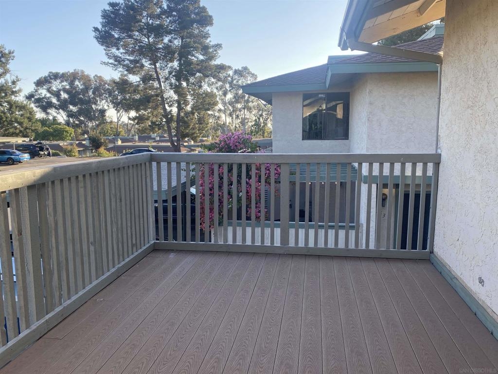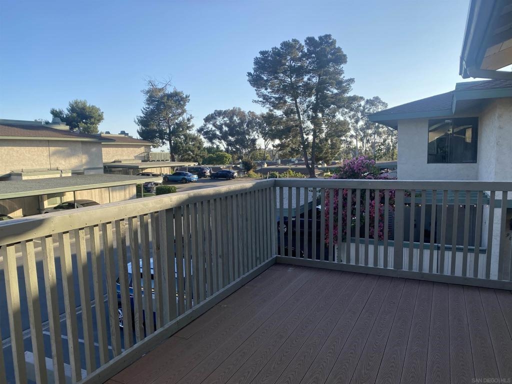 Enjoy this spacious 3 bedroom, 1.5 bathroom end unit townhome in the beautifully wooded Quest neighborhood in Mira Mesa. Plenty of both indoor and outdoor living space which includes a covered patio and large second story sun deck off the primary bedroom. The freshly painted interior makes this lovely home both light and bright to enjoy the open concept floorplan. Entertain guests on the lovely patio or cozy up with a book on the sun deck. Take a dip in one of two community pools within the neighborhood. Centrally located and within a short drive to Miramar Lake where you can picnic, hike, bike, boat, or fish. Then knock off everything on your "to do" list with a plentitude of shops, restaurants, and other local amenities in the area. This is the one you have been waiting for...don't miss out. 2 assigned parking spaces - 1 which is covered i.e., Spaces No.: 150 - A and B. Exterior laundry closet off patio is spacious enough for full size washer and dryer. Enjoy mini-split heating and air as well as lighted ceiling fans in every bedroom.