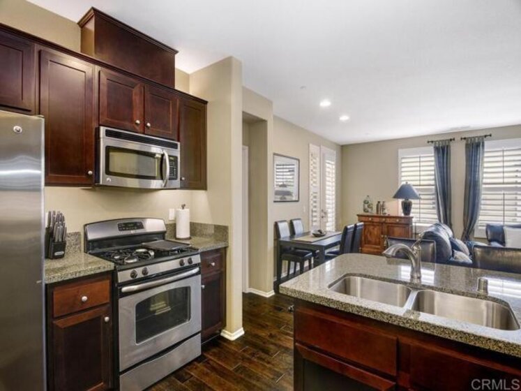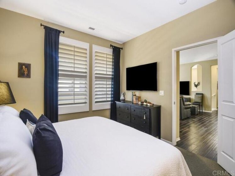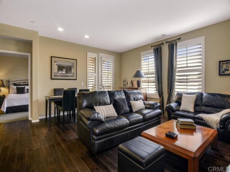 Highly desirable, rarely on the market, immaculately maintained townhome. Original owners chose the quietest location on the east side of the lovely community of Sorrento Terrace. Light and bright home features gorgeous espresso white oak hardwood floors, plush and luxurious carpet in the bedrooms and staircase, designer paint, granite countertops, stainless steel appliances, spacious laundry, plantation shutters throughout, and much more. Offering access to the community pool that’s almost like a private pool. Live, Work & Play within Sorrento Mesa with quick access to shopping, dining, entertainment, and more. Close to the tech park (Qualcomm, Dexcom, Apple, Google etc) Quick access to hiking, and biking trails, freeways, beaches, and public transportation. One car garage with plenty of storage attached and an additional parking spot included on the deed of the property. Welcome home!!!