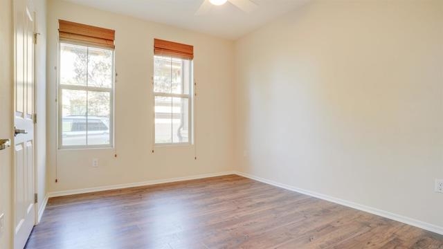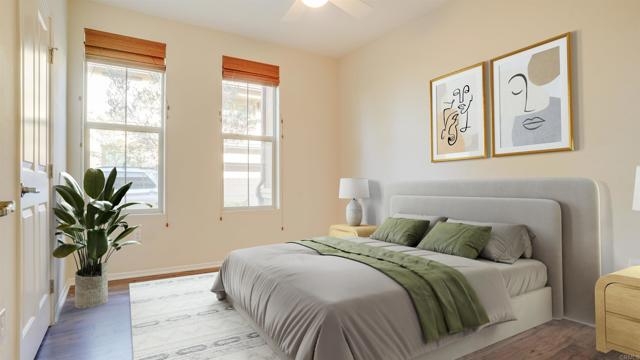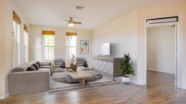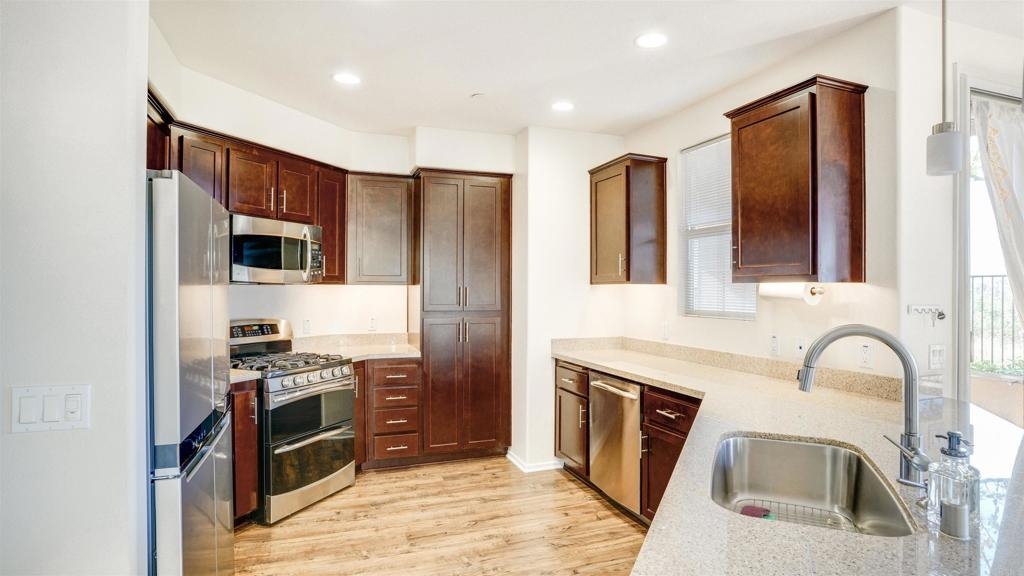 Discover your new home in the heart of Sorrento Valley! This exceptional 3-bedroom, 2-bath unit is a single-level, ground floor, corner unit that offers an abundance of natural light and serene views. Step into an open-concept layout that seamlessly connects the upgraded chef's kitchen to the living area. The kitchen features granite countertops, stainless steel appliances, and a convenient breakfast bar, perfect for casual dining or entertaining. Enjoy the sophisticated look of hand-scraped hardwood and tile flooring throughout the home, adding both style and ease of maintenance. With two balconies, you have the perfect spot for enjoying your morning coffee or an evening cocktail, surrounded by the tranquility of the canyon views. The master bedroom is a private retreat with its own patio, a walk-in closet, and an additional wardrobe closet. The en-suite bathroom features his-and-her sinks and a tiled shower surround. This home includes an attached 2-car tandem garage and a spacious laundry room, adding to your everyday convenience and comfort. Take advantage of the community amenities, including a pool, spa, bbq, playground, and more, enhancing your lifestyle with leisure and recreation options. Situated in the desirable Sorrento Valley, you'll have easy access to local parks, top-rated schools, shopping, dining, and major freeways. This home offers the perfect blend of peaceful living and urban convenience. Don't miss out on this turnkey home that has everything you need and more.