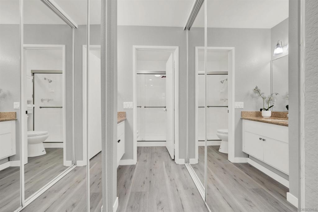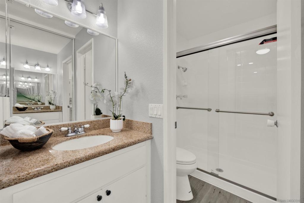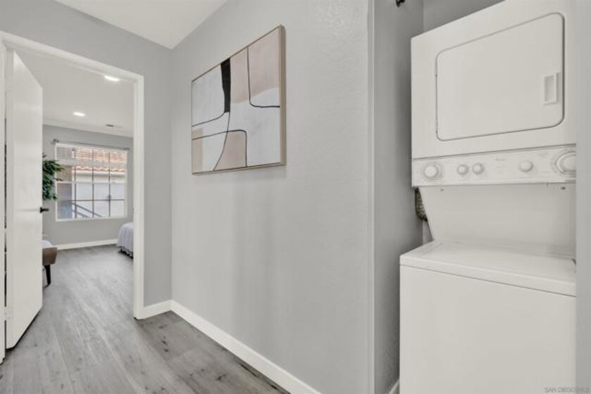 Looking for your first home or an excellent investment option in high-demad Mira Mesa region? This top-floor, 2BR/2BA condo with dual primary suites offers comfort, flexibility, and value. Enjoy an upgraded kitchen, cozy fireplace, private balcony, in-unit laundry, and central A/C. Freshly painted and new flooring in 2025. The FHA-approved, pet-friendly community features a pool, spa, and gym, with HOA covering major exterior expenses and water. Conveniently located near shopping, dining, freeways, and major employment hubs—this is a move-in ready home that checks all the boxes.