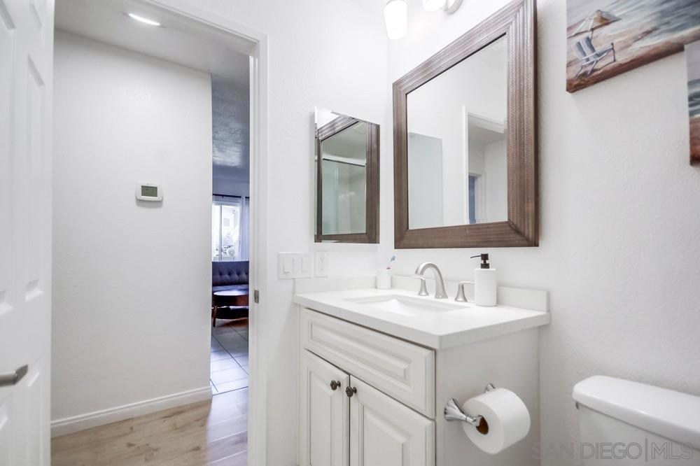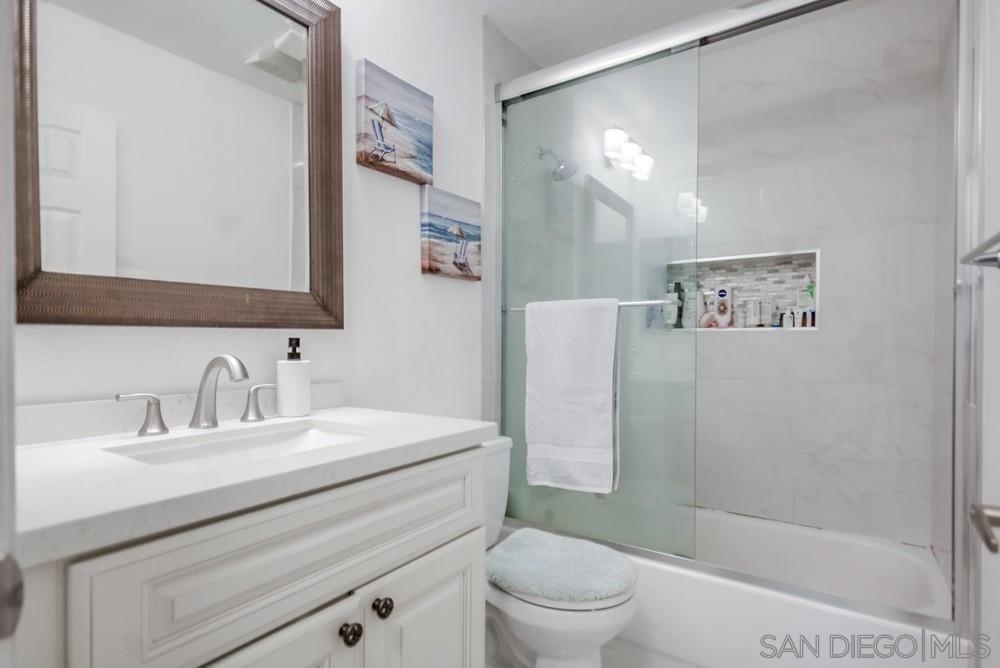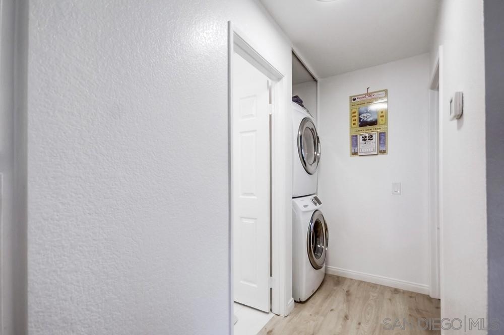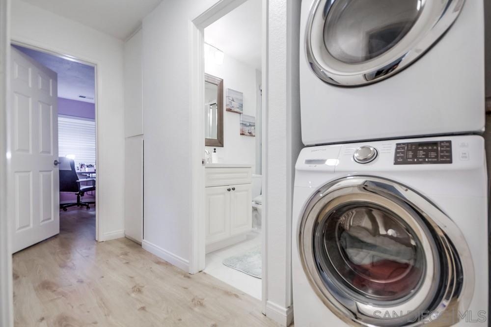 Nicely updated 2bd/2ba Mira Mesa condo! Bright Ground Floor Unit with abundance of natural light in rarely available Summit Ridge. Quartz counters in the kitchen, tile flooring in the living room/ kitchen and laminate thoughout the rooms. Good sized rooms with nicely updated baths with stacked Washer/Dryer in hallway nook. Plenty of open parking in front of the condo as well as Street parking. This property will sell quickly! See it ASAP!