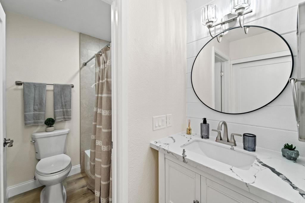 Conveniently located off of Mira Mesa Blvd/Sorrento Parkway this condo features 2 master bedrooms. Stacked closet laundry inside the unit for your convenience. Plenty of parking. Minutes to shopping, restaurants, starbucks and the 805 Fwy. New Kitchen, New appliances, New tub, New fixtures, New flooring, New countertops, 1 assigned parking space #185. HOA fees includes: Water, Trash, property landscaping maintenance. Heating & AC controlled by New Wifi Thermostat.