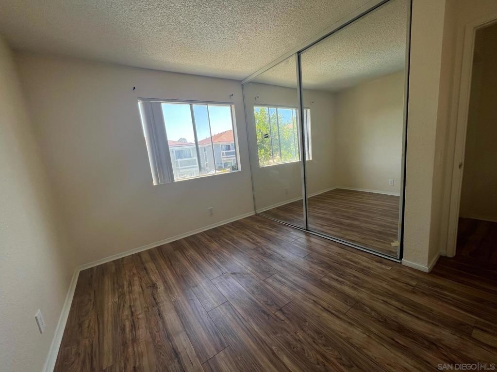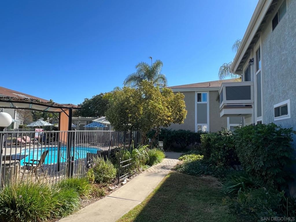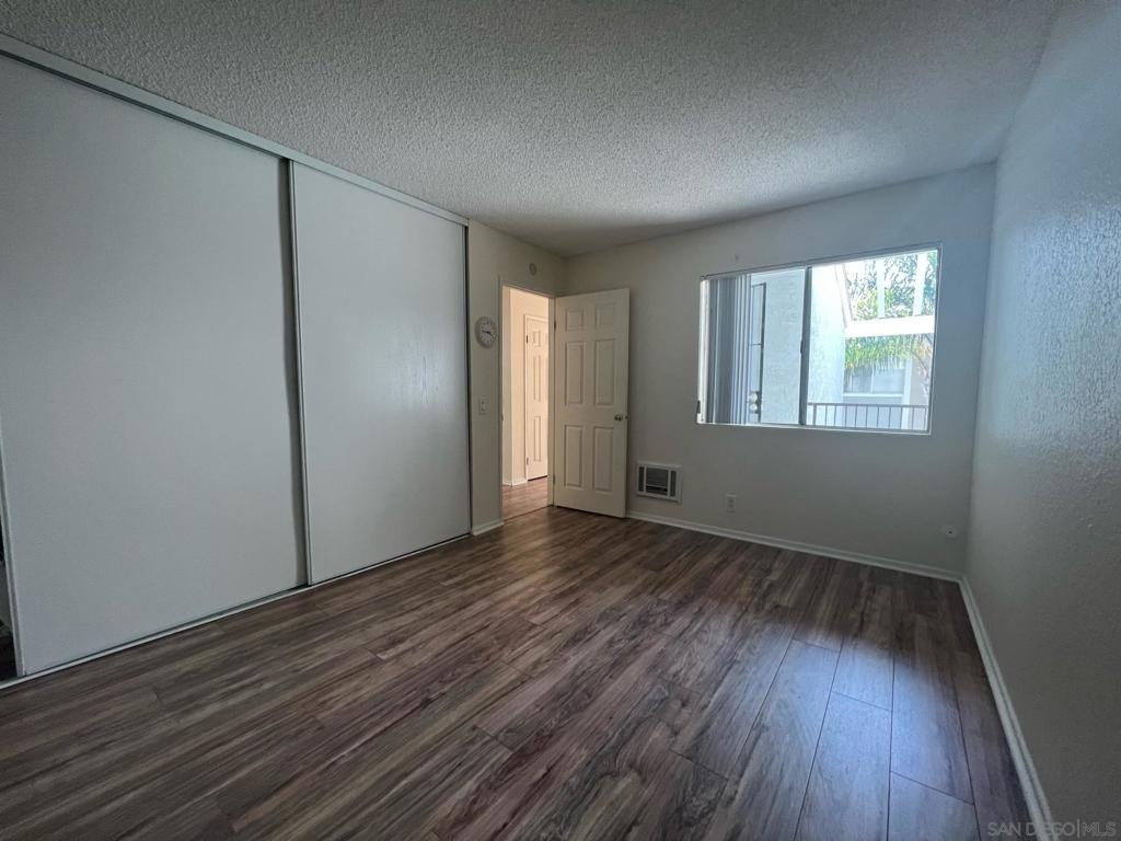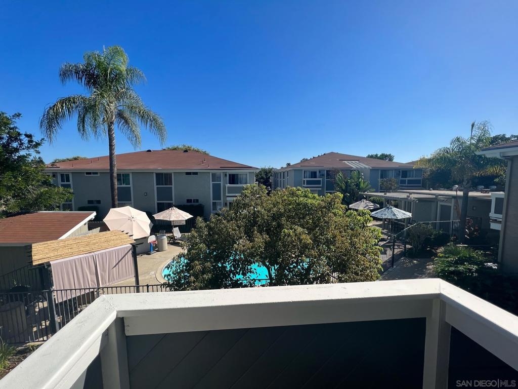 Bright 2b/1b condo in Mira Mesa featured with Granite counter tops & elegant laminate flooring. This is a corner-end upstairs unit with a nice view of community pool. Easy access to freeways and close to shopping center & schools. Water (hot & cold) included in HOA.
