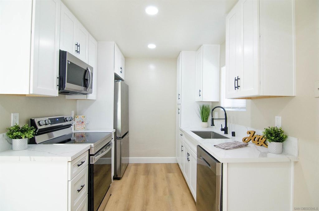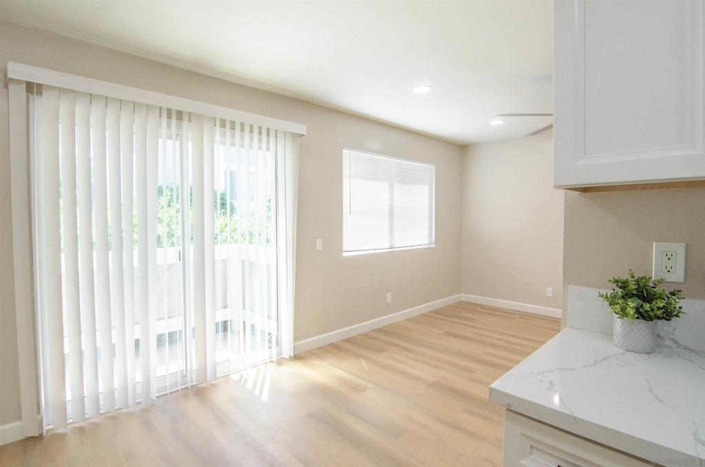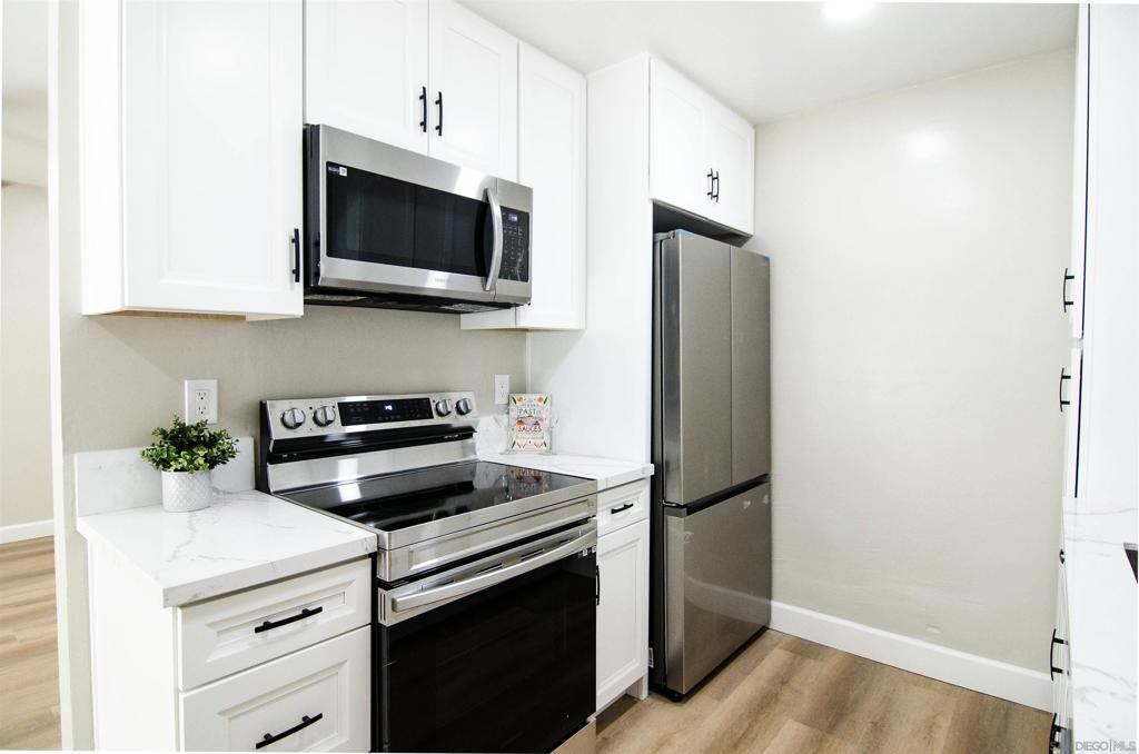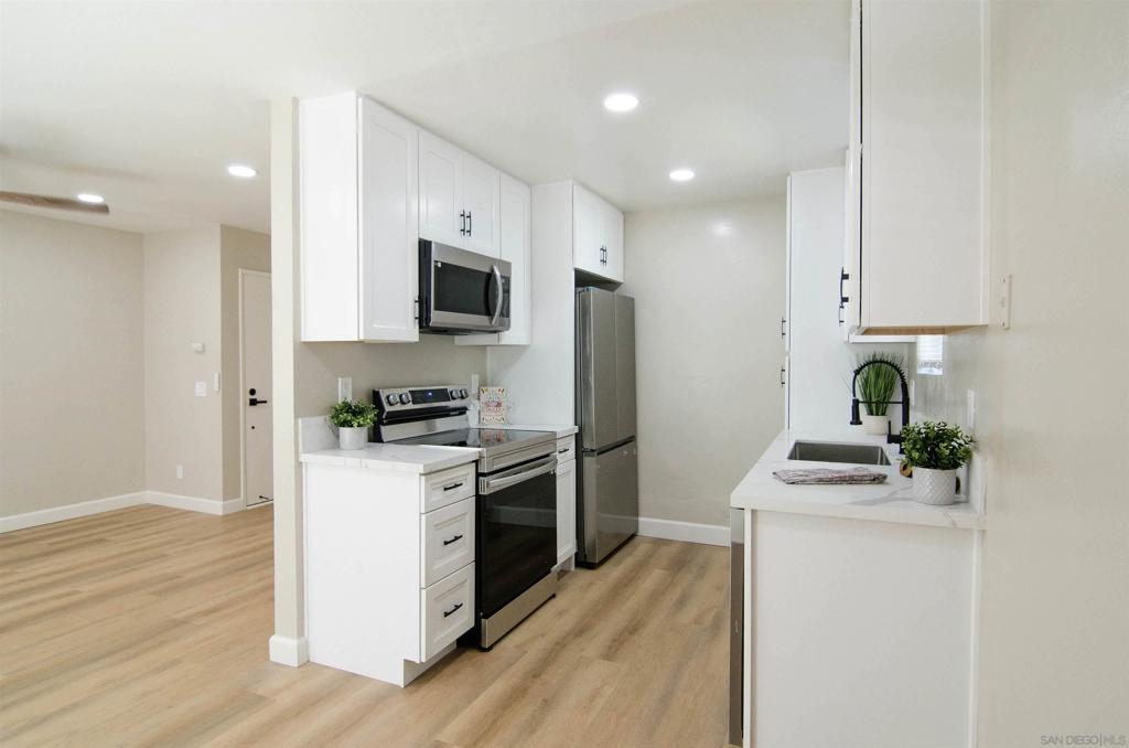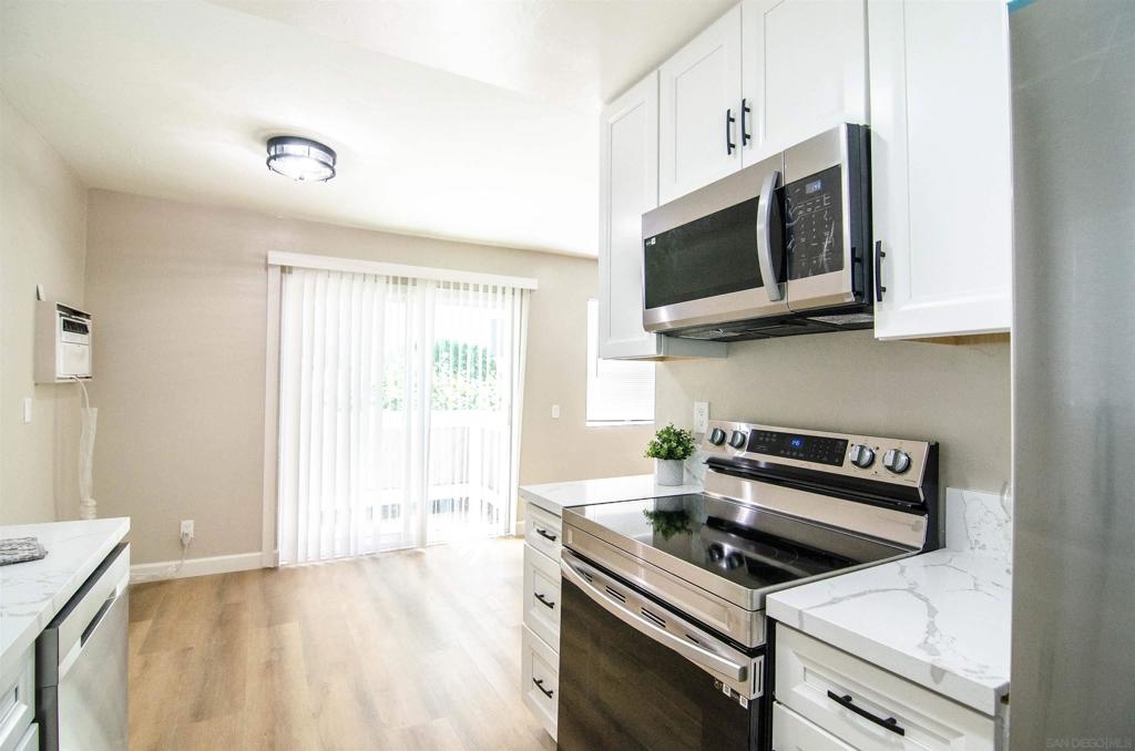 PRICE REDUCTION! Stunning newly remodeled condo with 33k in upgrades. Including dual pane windows, new sliding door, neutral paint, window coverings, waterproof vinyl flooring throughout. Completely remodeled kitchen to reflect a modern style, including all new appliances. Recessed lighting, ceiling fans with remote, and all new modern fixtures. Upgraded Energy efficient wall AC’s. Mirrored closet doors and ample storage. 5-inch baseboards add a touch of elegance to the living space. Higher ceilings give this condo an oversized feel. Option for in unit W/D hookups. See supplement. HOA allows installation of in unit W/D hookups. Owners need to file an Architectural Variance Request with the Board, and the HOA plumber must do the plumbing installation inside the wall.