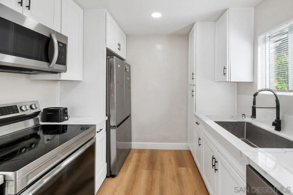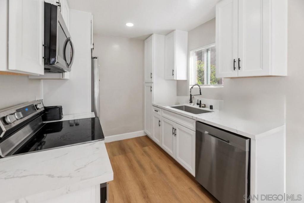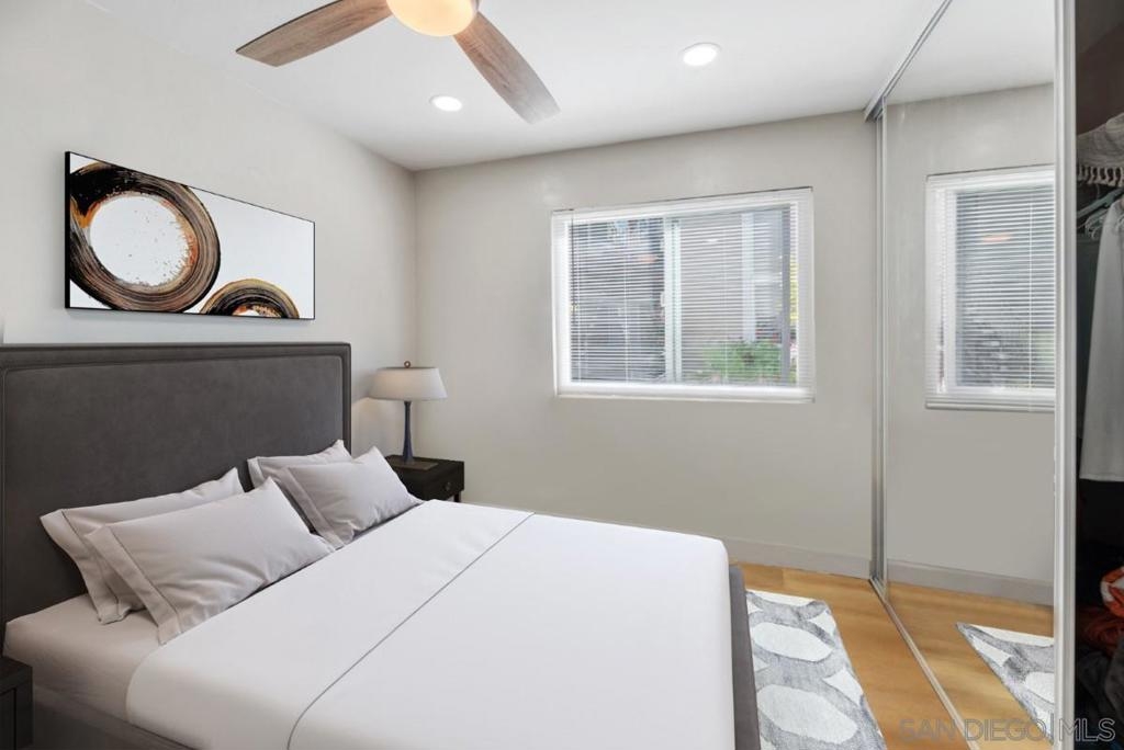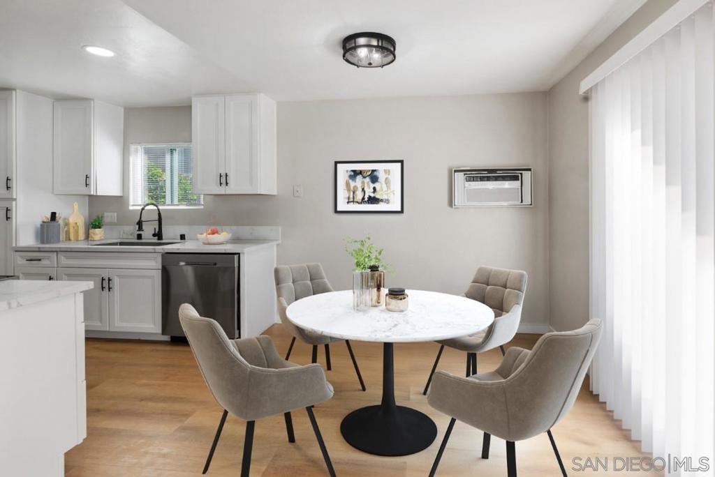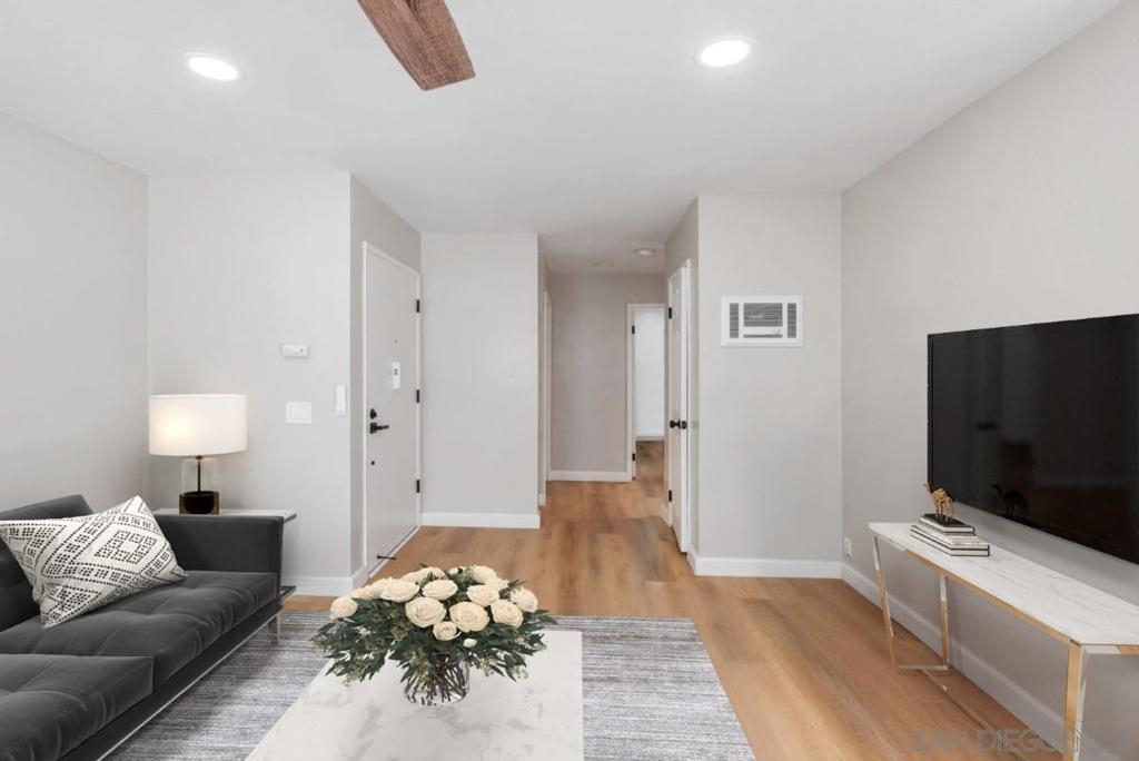 Welcome to this Stunning Remodeled condo in the heart of Mira Mesa! All upgrades were done in 2023, including dual pane windows, new sliding door, neutral paint, window coverings, and waterproof vinyl flooring throughout. Completely remodeled kitchen reflects a modern style, including all new appliances. Recessed lighting, ceiling fans with remote, and all new modern fixtures. Upgraded Energy efficient wall AC’s. Mirrored closet doors and ample storage. 5-inch baseboards add a touch of elegance to the living space. Higher ceilings also give this condo an oversized feeling. Don't miss out on this rare gem, where you can call home! HOA allows installation of in unit W/D hookups. Owners need to file an Architectural Variance Request with the Board, and the HOA plumber must do the plumbing installation inside the wall. *Photos are Virtually Staged. HOA allows installation of in unit W/D hookups. Owners need to file an Architectural Variance Request with the Board, and the HOA plumber must do the plumbing installation inside the wall.