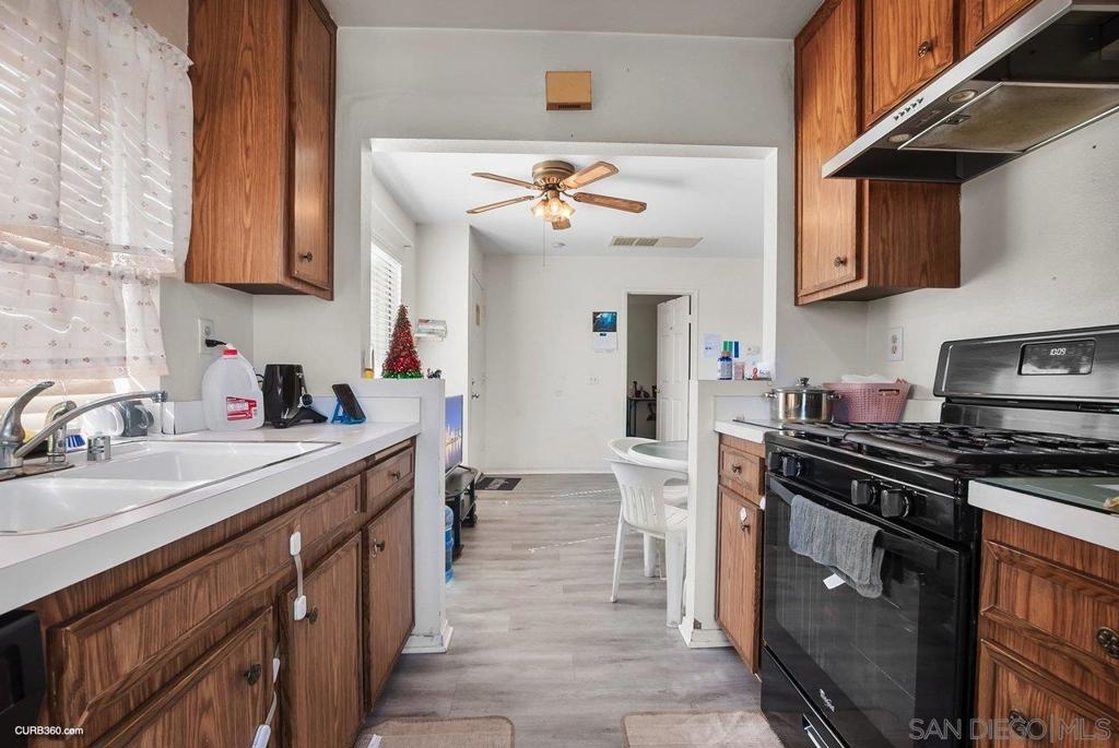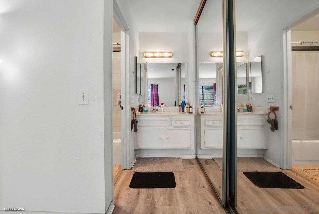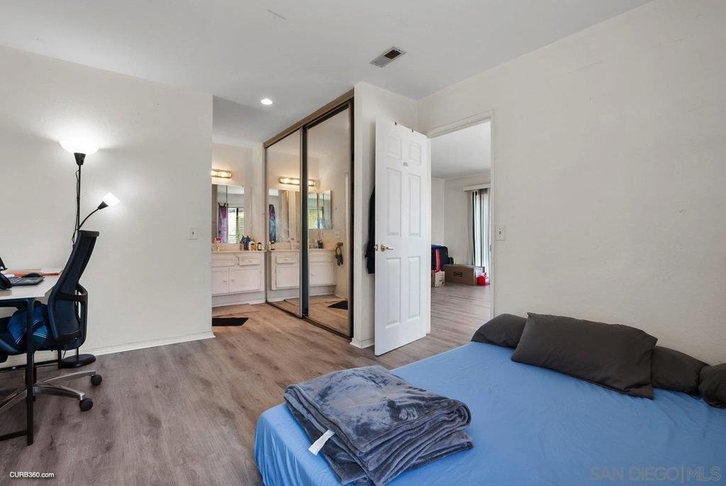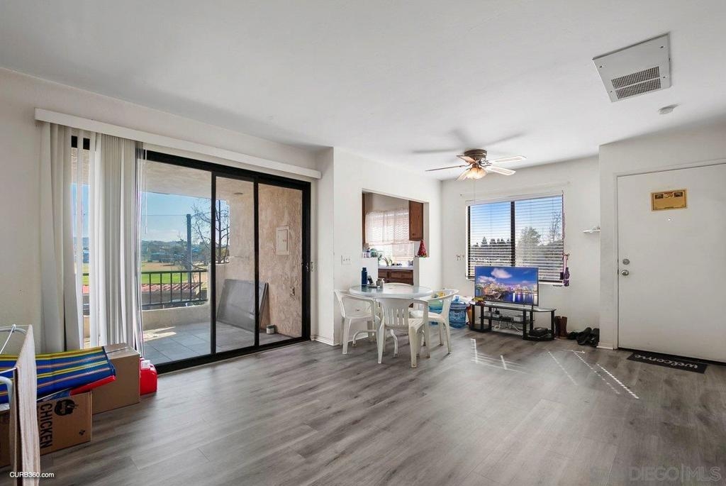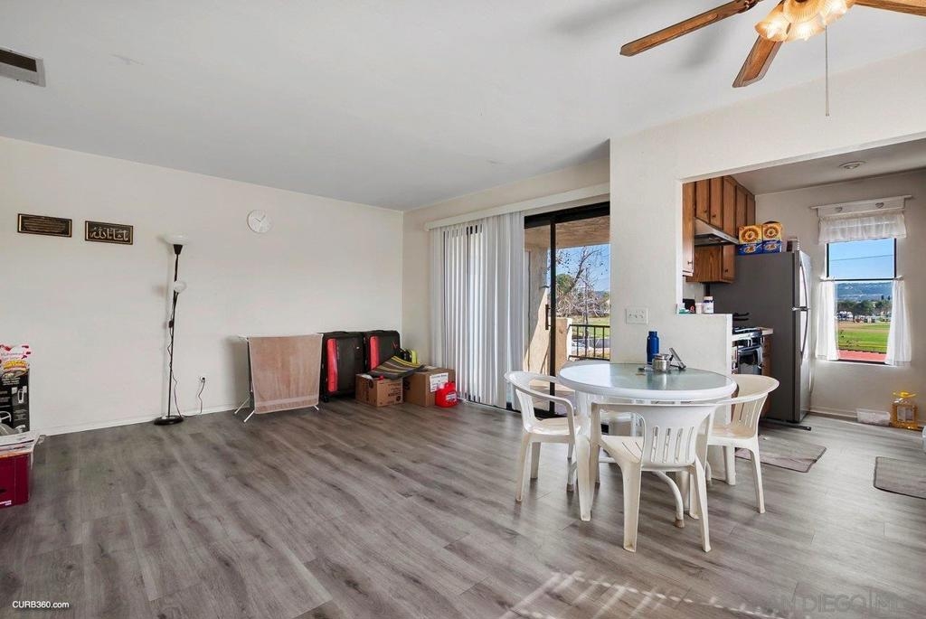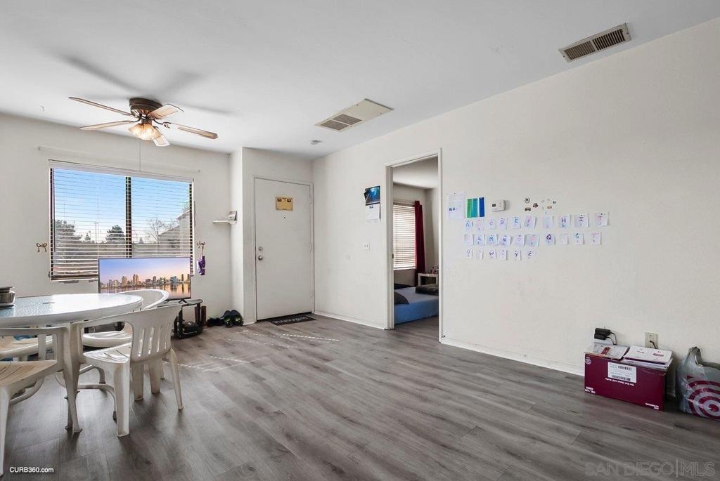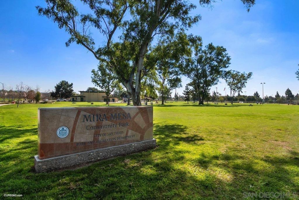Value Range Pricing $430,000-$450,000. Welcome Home to this well maintained, top floor, end unit, away from road noise, 1 bedroom condo with great park and mountain views!!! This condo is perfect for a 1st time buyer or, a great investment for someone looking to add a rental property to their real estate portfolio. The seller has installed luxury vinyl plank flooring throughout the unit. See Supplement for additional features. Other features include a ceiling fan in the dining area, a sliding door to the patio, dual pane window s throughout. The bedroom has spacious closets with mirrored doors with closet organizers. The private covered patio has slate flooring and a storage closet with laundry hookups. This end unit faces the east with great views of the local mountains. This condo is located in the heart of Mira Mesa. Its close and walking distance to so many stores, parks (across the street), restaurants and banks to name a few. With just a short drive, you're at Lake Miramar, MCAS Miramar, I 15 or I 805, Sorrento Valley, Movie Theaters, churches, schools and so much more.