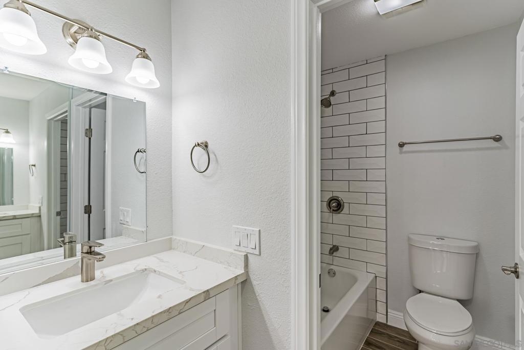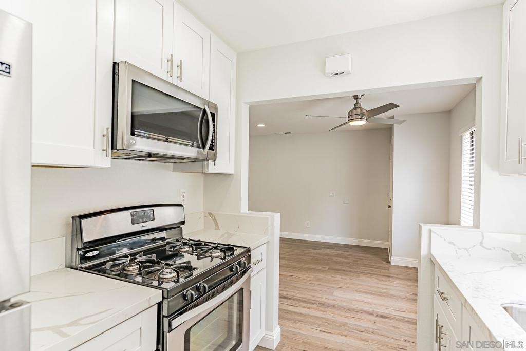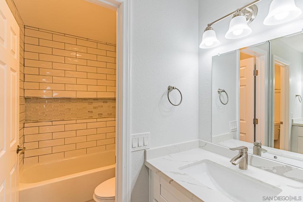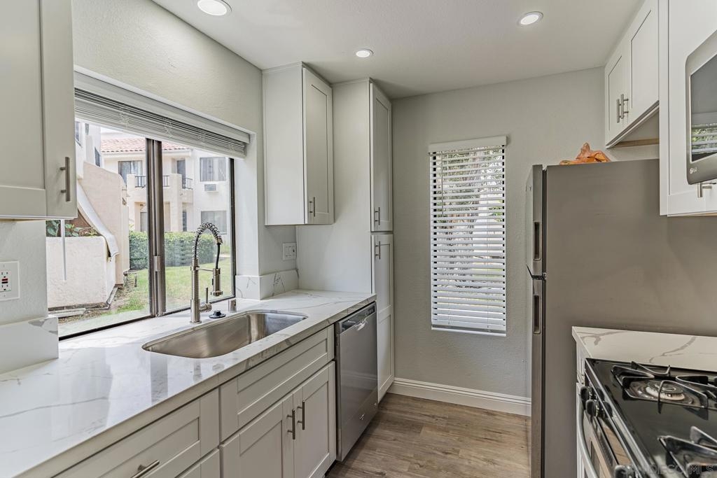 Complete remodel move in ready condo in the heart of Mira Mesa. Great location in complex. Walking distance to Mira Mesa Rec Center and Park. New kitchen and bathrooms. New paint throughout. New vinyl plank water proof flooring. Washer/Dryer on extra large patio. Low HOA that covers water too. Seller mentioned you can buy an extra parking space from HOA for $25 per month. This one wont last long! Equipment: Dryer, Washer Sewer: Sewer Connected Topography: LL