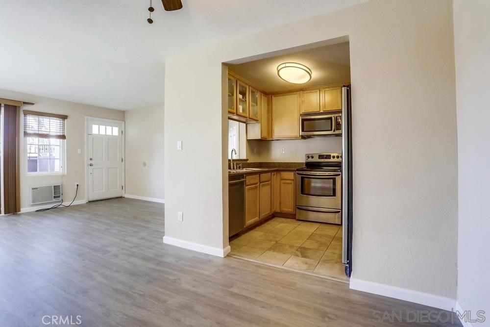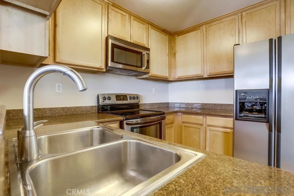 This lovely Unit is priced for a quick sell! Spacious and open one-bedroom first-floor condo in Mira Mesa. The highly upgraded Unit features new vinyl plank flooring throughout, stainless steel appliances, dishwasher, glass-top electric range, refrigerator, granite counters, tile floors, huge walk-in closet, stacked laundry in the closet, private patio, and assigned parking. Complex features pool, fitness area, and professional landscaping. The seller had already paid off the second individual assessment. (It means there are no second HOA dues for this Unit) that makes this Unit more attractive! Spectacular opportunity for investors!