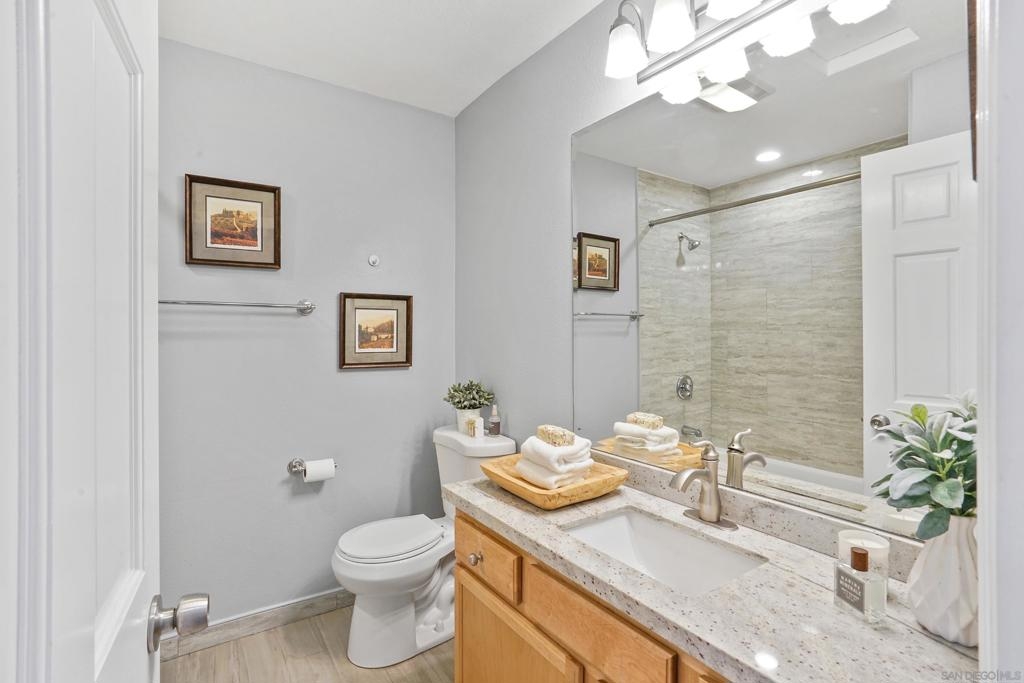 TOWNHOME-STYLE, NOBODY ABOVE YOU, DUAL-BALCONY w/ LAUNDRY & VIEWS OVERLOOKING THE NEIGHBORHOOD WEST.” WHAT WE LOVE: *This home is one of the most unique condos on the market in that when you are inside it feels like a TownHome. Every window you look out you see canopy treetops and blue skies because you are 40’+ over street level. *Laundry in unit and upstairs. *Kitchen & Bathrooms updated *Dual pane windows & sliders *Vaulted ceilings in both bedrooms *Sunken living room w/ closet space *Recessed back in the complex so you have optimal privacy (WHAT WE LOVE, CONT.) This home is in the “Triple-Crown” of first-time homebuyer and/or investor: It’s a functional layout, tucked back in end of the community (limited foot traffic), but still only paces to the pool & rec room while also in the perfect location for the area for its convenience to the 15 and proximity to everything else! LAYOUT: Nobody sleeps above you!! Half bath in the downstairs for ease/guests, updated kitchen & baths w/ granite counters, SS appliances, tile floors in entry, kitchen and baths. PERFECT SPOT: Look out your window west out either slider/balcony and you are 40’+ above the street and peek at Miramar College and/or the green canopy of neighborhood treetops. LOCATION: Two turns and you are one the 15 and you are a quick drive to some of the best niche restaurants, to shopping area/conveniences. Equipment: Range/Oven Sewer: Sewer Connected Topography: LL