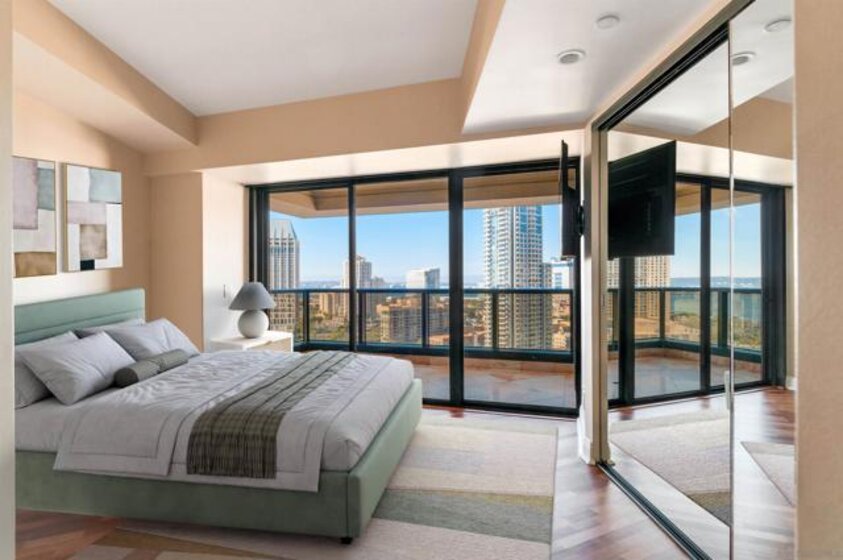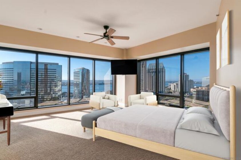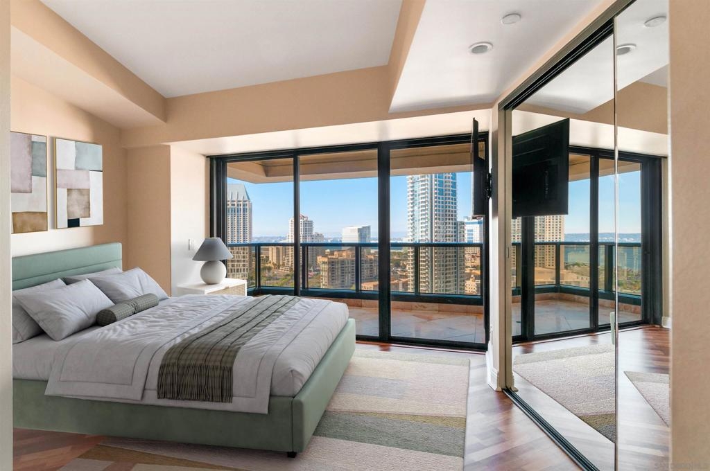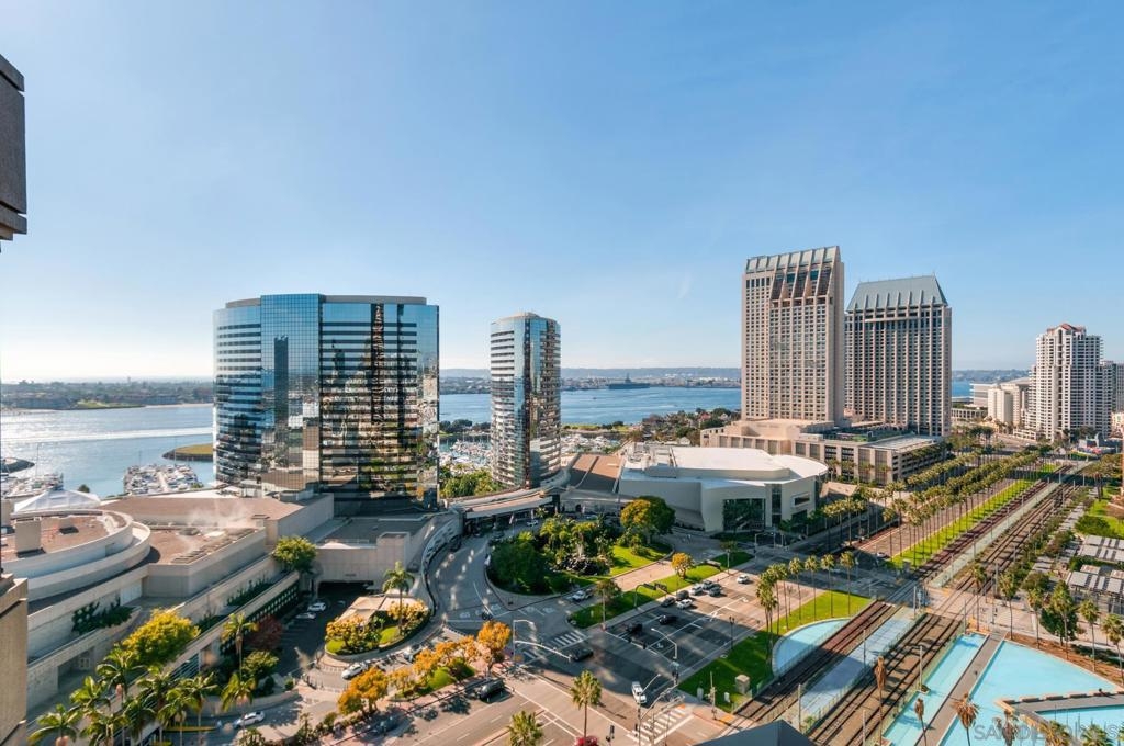 Discover an elevated lifestyle at The Harbor Club, one of Downtown San Diego's most distinguished addresses. This iconic twin-tower residence rises 41 stories above the city, positioning you moments from Balboa Park, the San Diego Zoo, Petco Park, the Rady Shell, Seaport Village, and Little Italy - with San Diego International Airport conveniently nearby. Embrace effortless luxury in this full-service high-rise, where 24-hour concierge service, premium security, and resort-inspired amenities - including a sparkling pool, relaxing sauna, and state-of-the-art fitness center. This exceptional residence captures sweeping views of San Diego Bay and the dynamic city skyline. Floor-to-ceiling windows and a private balcony frame spectacular water vistas and mesmerizing sunsets, creating an ever-changing backdrop for your daily life. A fresh coat of paint, new floors, new matching appliances, upgrades to the bathrooms, and a custom primary closet make this unit both elegant and functional. The Harbor Club delivers the ultimate lock-and-leave lifestyle, ideal for retirees, second-home buyers, or professionals seeking classic sophistication. Discover an elevated lifestyle at The Harbor Club, one of Downtown San Diego's most distinguished addresses. This iconic twin-tower residence rises 41 stories above the city, positioning you moments from Balboa Park, the San Diego Zoo, Petco Park, the Rady Shell, Seaport Village, and Little Italy - with San Diego International Airport conveniently nearby. Embrace effortless luxury in this full-service high-rise, where 24-hour concierge service, premium security, and resort-inspired amenities - including a sparkling pool, relaxing sauna, and state-of-the-art fitness center. This exceptional residence captures sweeping views of San Diego Bay and the dynamic city skyline. Floor-to-ceiling windows and a private balcony frame spectacular water vistas and mesmerizing sunsets, creating an ever-changing backdrop for your daily life. A fresh coat of paint, new floors, new matching appliances, upgrades to the bathrooms, and a custom primary closet make this unit both elegant and functional. The Harbor Club delivers the ultimate lock-and-leave lifestyle, ideal for retirees, second-home buyers, or professionals seeking classic sophistication.