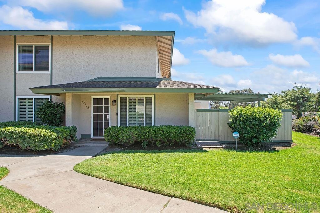 This spacious 4 bedroom, 2 bath, two-level condo in Mira Mesa lives like a detached house. Located at back corner of complex with green grass surrounding it and an enclosed private patio. Fujitsu A/C & heating units installed. Full bed/bath on first floor. Custom shutters. Feels very private. Sparkling community pool just down the hill from unit. Two side-by-side parking spaces close to condo front door.