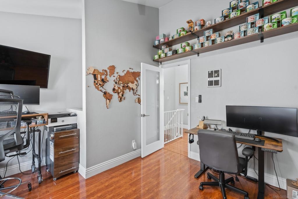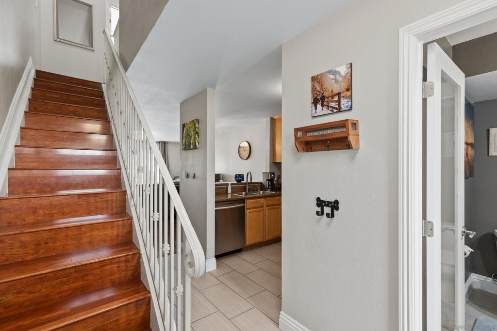 Discover the perfect blend of style, comfort, and modern upgrades in this stunning condo located in the highly sought-after Windsor Park community of Mira Mesa! As you enter, you're immediately greeted by a spacious, open-concept kitchen and living area—ideal for entertaining. The beautifully upgraded kitchen features stainless steel appliances and offers a seamless flow into the living space, creating the perfect atmosphere for hosting friends and family. Whether you’re cooking, relaxing, or enjoying time with loved ones, this space will be the heart of your home. This 2-bedroom, 1.5-bathroom townhome spans approximately 884 square feet and boasts a sunny south-facing orientation that fills the space with natural light. The downstairs area features upgraded luxury vinyl plank flooring throughout, adding a modern touch to the home. For added convenience, there are custom under-the-stairs storage drawers, perfect for keeping your living area neat and organized. Upstairs, dramatic vaulted ceilings elevate both bedrooms, creating a sense of openness and sophistication. The versatile secondary bedroom can serve as a guest retreat, home office, or both. The primary suite features mirrored wardrobe doors and a private balcony, offering a serene spot to unwind. Step outside and enjoy the resort-like amenities of Windsor Park, including lush, park-like grounds, a pool, gym, and BBQ areas. This unbeatable location places you just minutes from Lake Miramar, Miramar College, I-15, and the vibrant Mira Mesa Market Center with its IMAX theater, shops, and dining options. Discover the perfect blend of style, comfort, and modern upgrades in this stunning condo located in the highly sought-after Windsor Park community of Mira Mesa! As you enter, you're immediately greeted by a spacious, open-concept kitchen and living area—ideal for entertaining. The beautifully upgraded kitchen features stainless steel appliances and offers a seamless flow into the living space, creating the perfect atmosphere for hosting friends and family. Whether you’re cooking, relaxing, or enjoying time with loved ones, this space will be the heart of your home. This 2-bedroom, 1.5-bathroom townhome spans approximately 884 square feet and boasts a sunny south-facing orientation that fills the space with natural light. The downstairs area features upgraded luxury vinyl plank flooring throughout, adding a modern touch to the home. For added convenience, there are custom under-the-stairs storage drawers, perfect for keeping your living area neat and organized. Upstairs, dramatic vaulted ceilings elevate both bedrooms, creating a sense of openness and sophistication. The versatile secondary bedroom can serve as a guest retreat, home office, or both. The primary suite features mirrored wardrobe doors and a private balcony, offering a serene spot to unwind. Step outside and enjoy the resort-like amenities of Windsor Park, including lush, park-like grounds, a pool, gym, and BBQ areas. This unbeatable location places you just minutes from Lake Miramar, Miramar College, I-15, and the vibrant Mira Mesa Market Center with its IMAX theater, shops, and dining options.