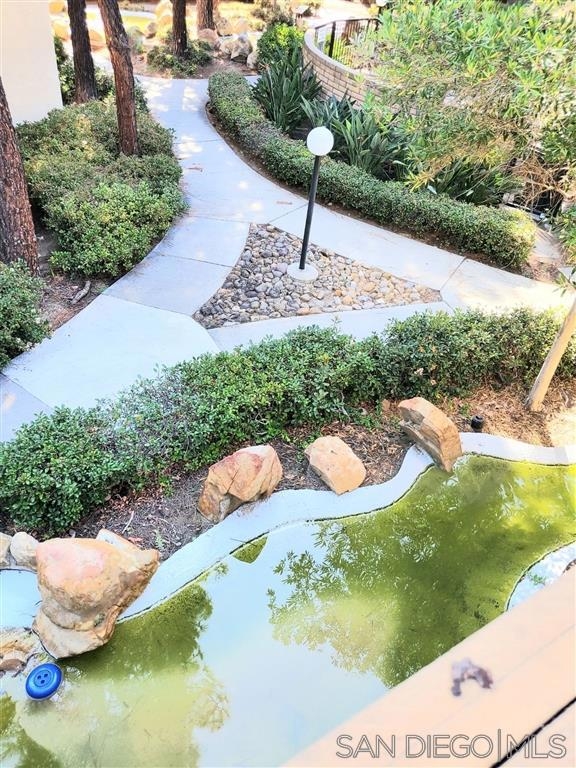BACK ON THE MARKET Condo with View from the balcony .great rental investment opportunity or great affordable starter home . Centrally located in Desirable Mira Mesa .Walking distance to Miramar College and Parks . Close to freeways Miramar Road , Marine Base , shops and restaurants. unenclosed bedroom ,kitchen with granite and hardwood floors. amenities include , Tennis Courts , swimming pool , spa and man made creek running thru the complex . priced to sell for the right investor or first time home buyer Complex Features: ,,,, Other Fees: 0 Sewer: Public Sewer Topography: LL