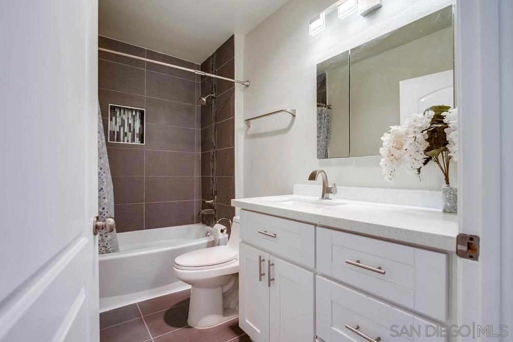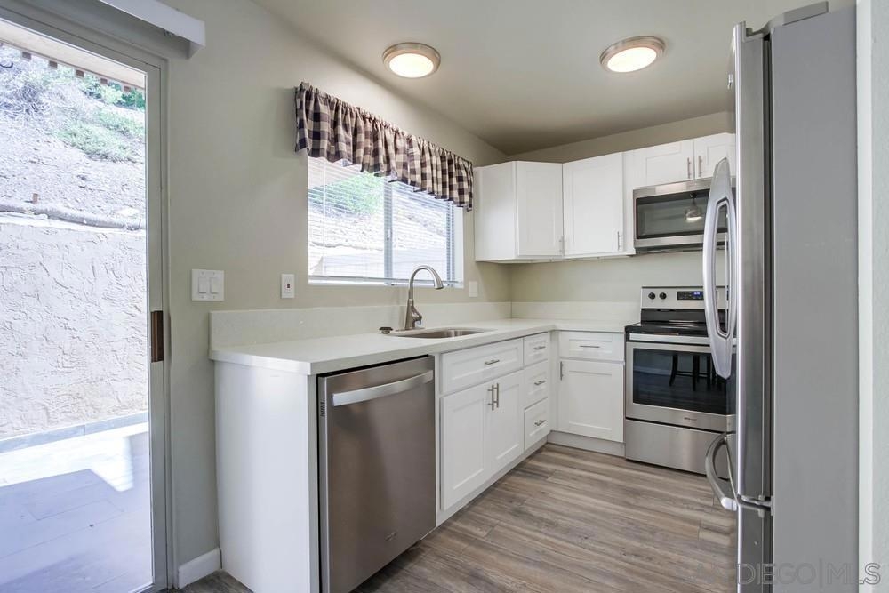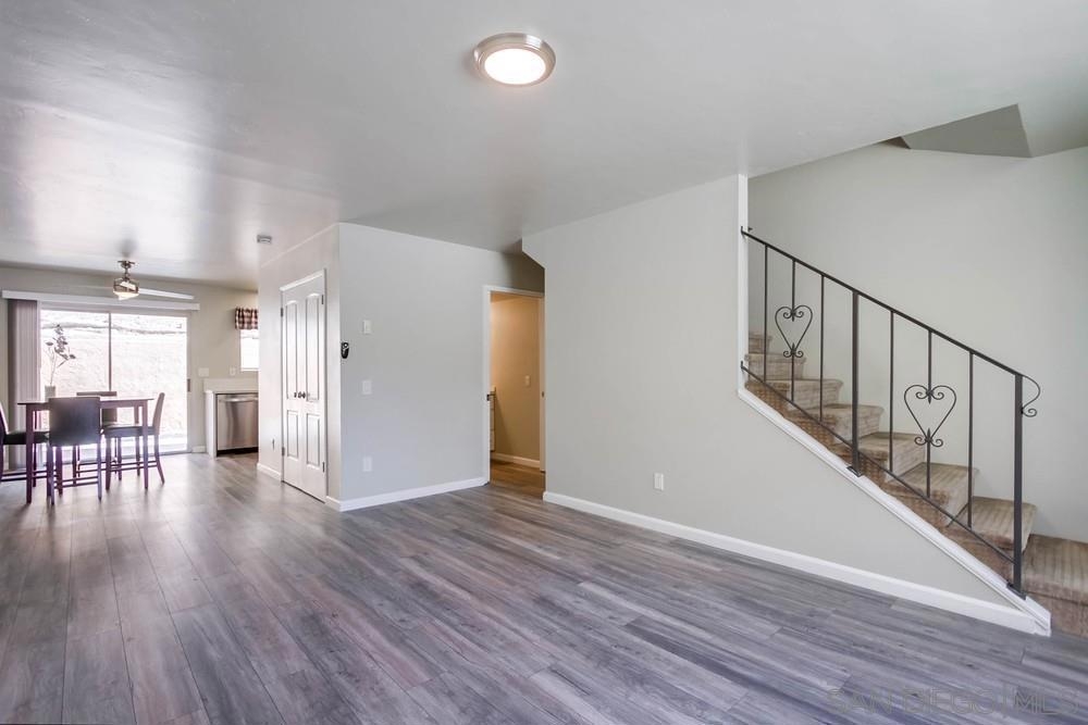 Move In Ready! This spacious 2 bedroom Townhome in Mira Mesa shows pride of ownership throughout. Lots of natural light with property features such as: 3 private patios, gray laminate wood flooring, newer carpeted stairs and upstairs, Quartz kitchen counter tops, stainless steel appliances, custom cabinets, in-unit stackable washer/dryer, ceiling fan in dining area, upgraded bathrooms and much more. Enjoy the cozy fireplace in living room. Equipment: Dryer, Washer Sewer: Sewer Connected, Public Sewer