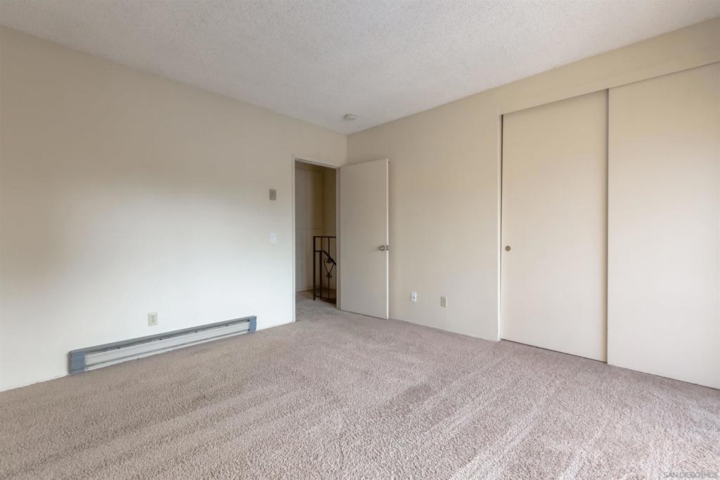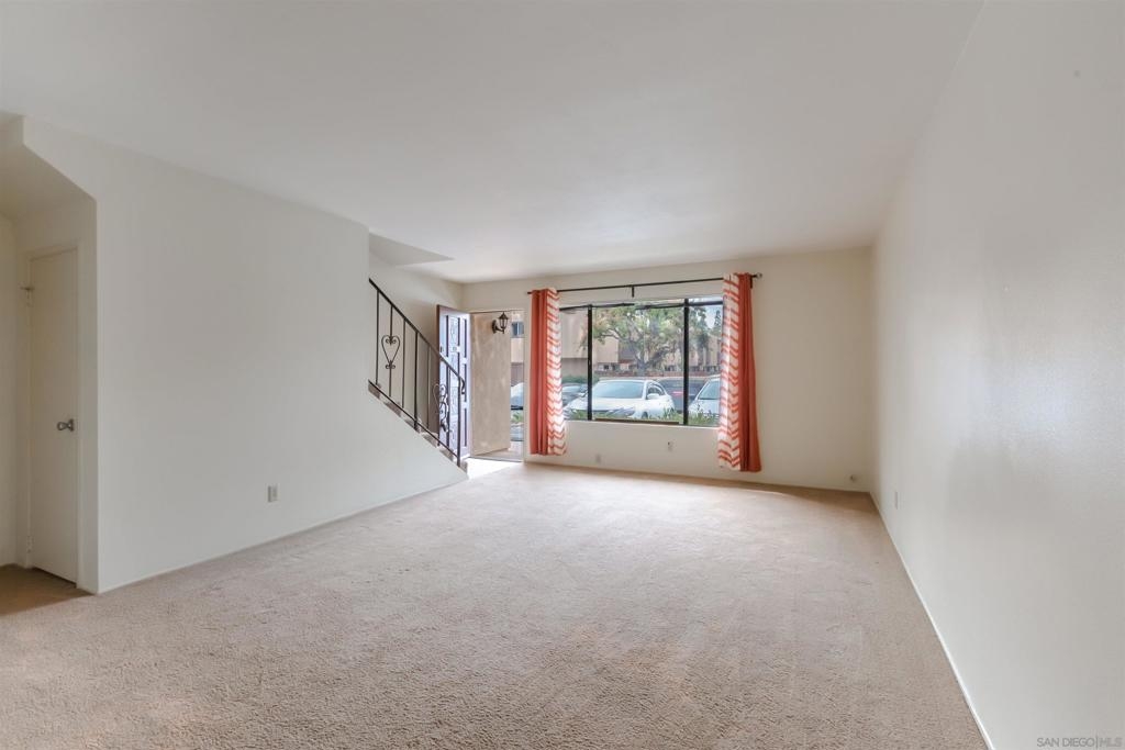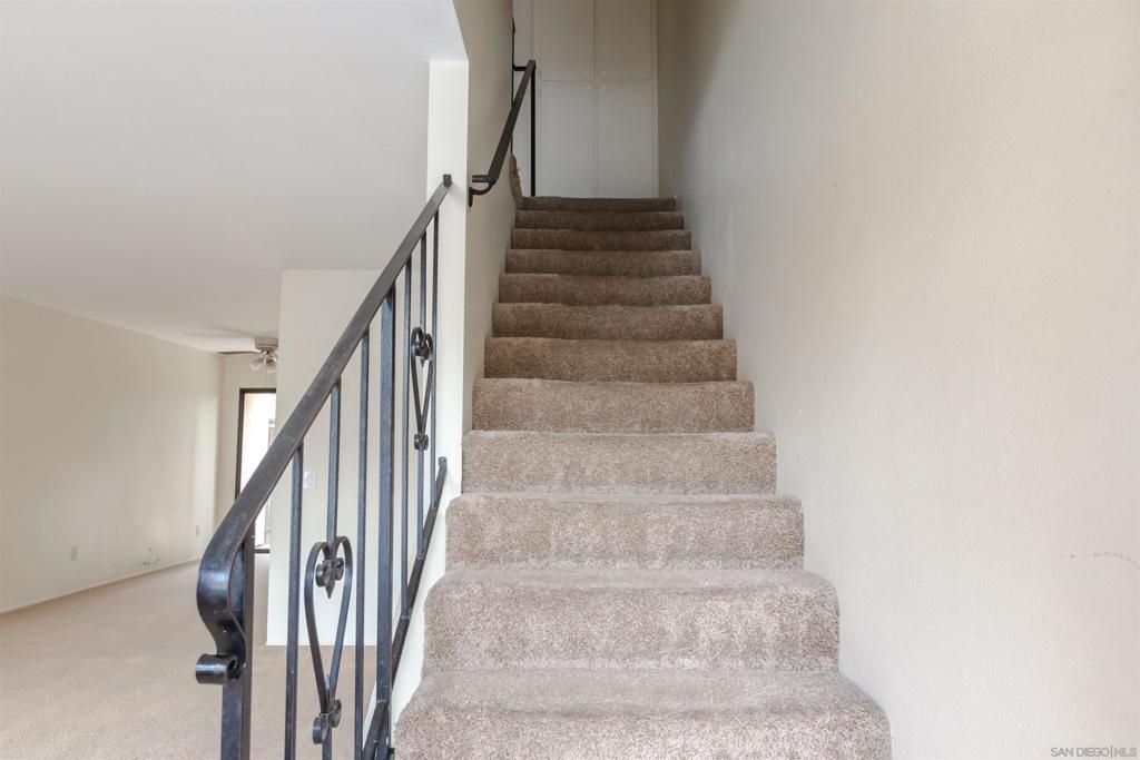 Two bedroom townhome in the Cold Creek community of Mira Mesa. Front door opens to a large living room with a half bath and laundry closet. Past the kitchen is a patio with concrete pad and areas for plants or a garden. Upstairs you'll find a full bath and two spacious bedrooms, each with their own balcony. Carpet throughout. Ready to for you to add your personal touch. Gold Creek community offers two community pools. Close to parks, freeways, schools and shopping.