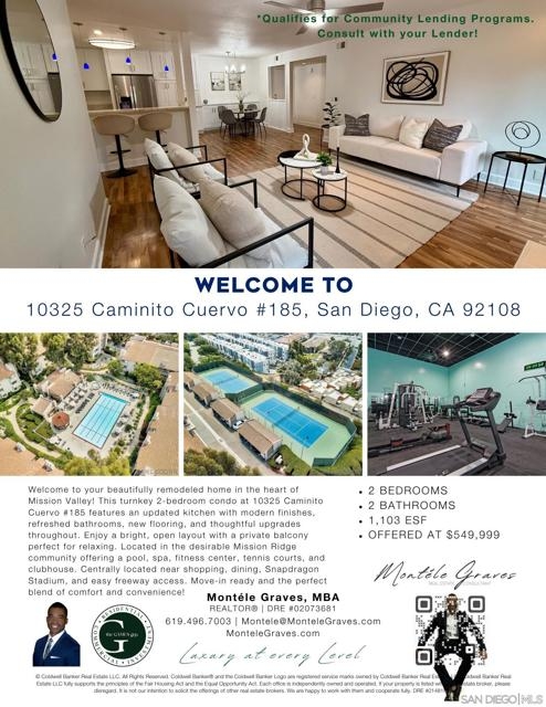 Welcome to your beautifully remodeled home in the heart of Mission Valley! This turnkey 2-bedroom 2-bathroom condo features an updated kitchen with modern finishes, refreshed bathrooms, new flooring, and thoughtful upgrades throughout. Enjoy a light & bright, open layout with a private balcony perfect for relaxing. Located in the desirable Mission Ridge community offering a pool, spa, fitness center, tennis courts, and clubhouse. Centrally located near shopping, dining, Snapdragon Stadium, and easy freeway access. Move-in ready and the perfect blend of comfort and convenience! Unit comes with 2 resident parking passes, including 1 car port with tons of additional storage! HOA fee includes hot water, trash and maintenance.