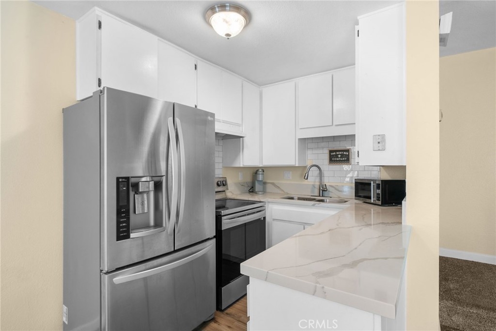 Welcome to Caminito Sulmona! We are pleased to present this exquisitely renovated two-story, 2 bedroom, 1 bathroom condominium. With comprehensive updates, providing a contemporary and welcoming environment. The newly designed kitchen is ideal for culinary enthusiasts, featuring elegant quartz countertops. Perfect location in community wrapping about the green for kids to enjoy running around while providing safety, perfect to enjoy a walk with your pet as well, lovely community pool to enjoy summers. Amazing open space to make the home feel much larger than it appears, flows beautifully to entertain guests, The bathroom is equipped with a modern vanity and updated lighting fixtures, contributing an element of sophistication. Residents will benefit from a shared garage that includes one designated parking space. The Homeowners Association (HOA) takes care of essential utilities such as water, sewer, and trash, Conveniently situated near an elementary school, shopping centers, and major highways, this home combines comfort with accessibility. Seize the opportunity to acquire this move-in-ready treasure!