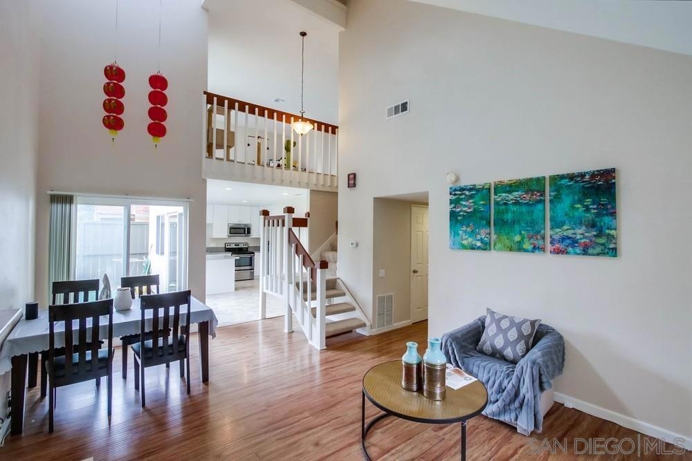 Beautiful Mira Mesa townhome. Full of natural lights. Fully remodeled. Quartz counters, newer cabinets, Dual pane windows & vaulted ceilings. 2 bedrooms upstairs/2 downstairs, huge loft on second level with tons of storage spaces. Central A/C. Convenient location. Check it out before it is gone. Sewer: Sewer Connected Topography: LL