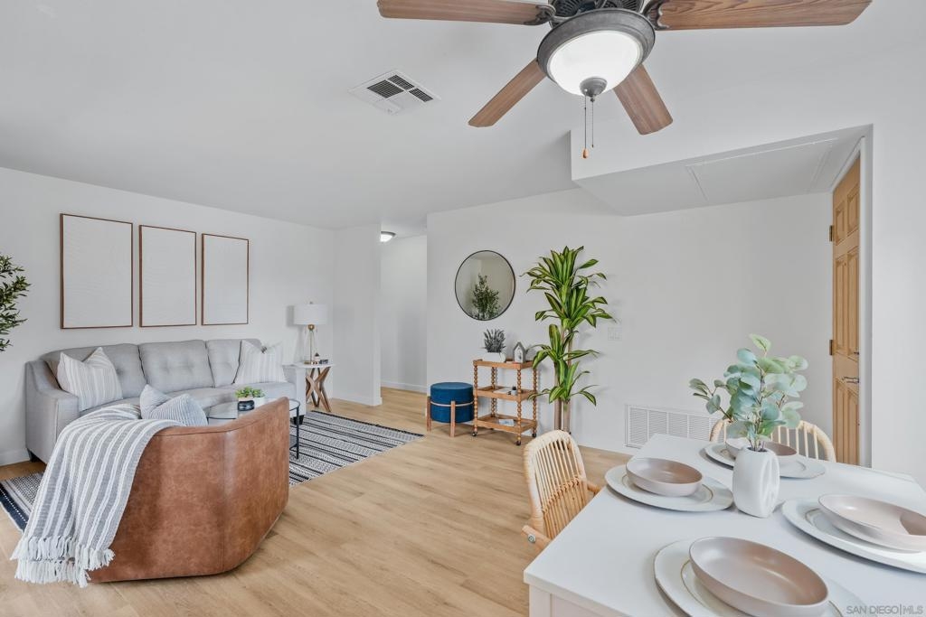 NEW HVAC, NEW FLOORING, NEW PAINT, IN-UNIT LAUNDRY! This centrally located, move-in ready, upgraded condo is for YOU! New flooring, paint, baseboards, and more! Ground floor level with 2 private primary suites with their own full bathroom. HVAC insures comfort year round and ceiling fans create refreshing circulation. Large, bright living space and private patio with storage. Walk or a quick drive to grocery, restaurants, church and local award winning schools - only 20 minutes to UCSD. Close to the 805, 56 and 15 freeways. Perfect for you and your family, roommates or as an investment property. Extremely close to the Sorrento Valley tech hub and on the MTS bus routes. Assigned parking for 2 cars. Swimming pool and gym are on-site. This complex is well maintained, walkable and a gem in Mira Mesa! Hurry over!