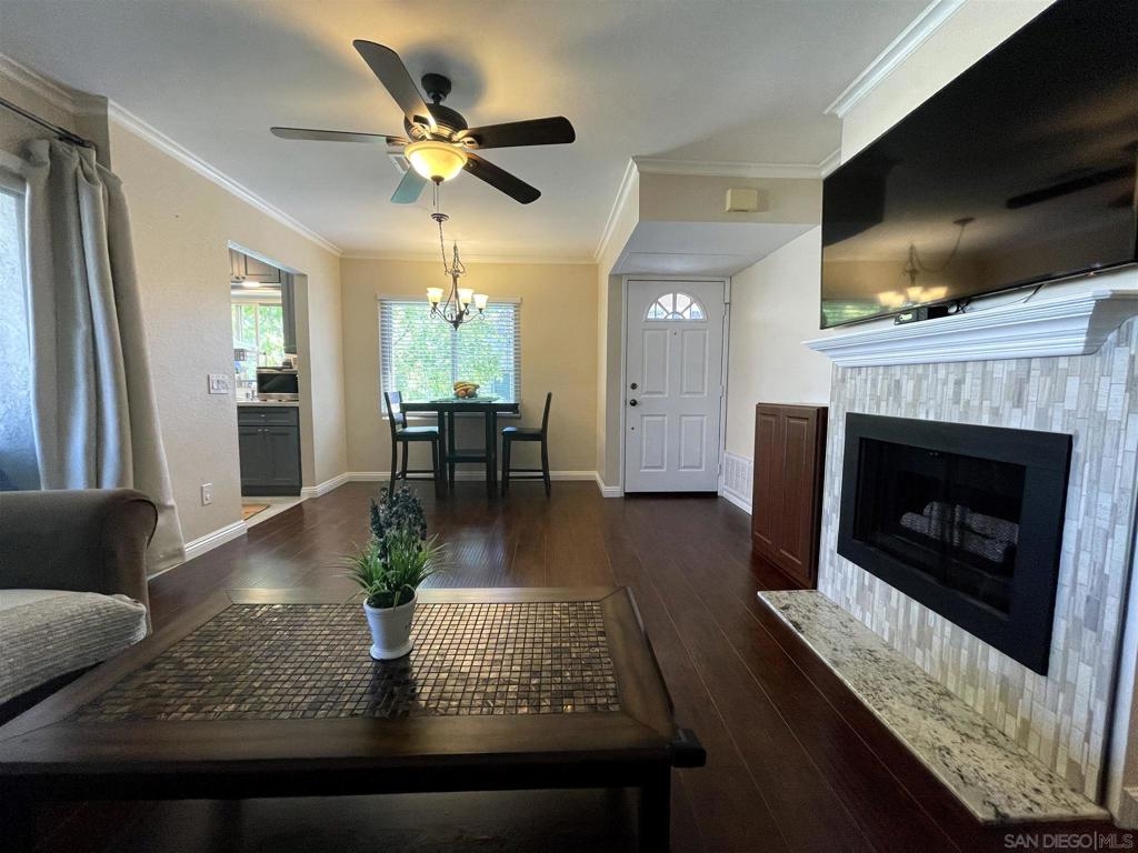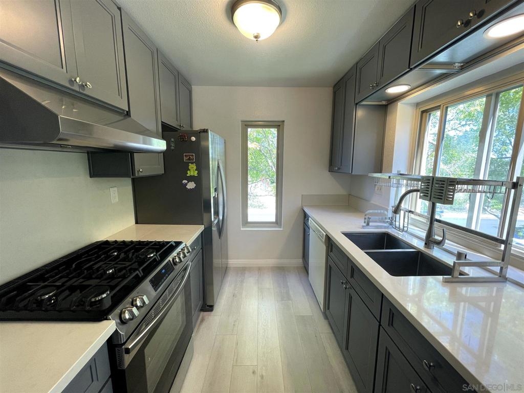 TURNKEY unit! Bright 2nd floor end unit in highly sought after High Ridge community. Surrounded by mature trees and tranquil landscaping, this home offers plenty upgrades! Laminate flooring, ceiling paint, ceiling fans, light fixtures! Completely remodeled kitchen cabinets, quartz countertop, slide-in GAS range, and a full size fridge! Full Central AC and In-Unit Laundry ALL CONVEY! Bedroom contains a large closet with plenty of room for your needs. Large open floor plan that leads out to a private balcony patio that is partially enclosed and extra storage. Close to parks, trails, dog parks, shopping centers and just a short walking distance to pool and facilities. Conveniently and centrally located near Sorrento Valley and UTC and all major freeways 5/56/805/15. Complex Features: , Equipment: Dryer, Washer Other Fees: 0 Sewer: Public Sewer Topography: LL