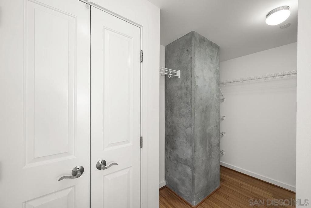 Welcome to the prime locale in Smart Corner, “The Point” floorplan, where walls of glass showcase panoramic views spanning Point Loma, the Pacific Ocean, San Diego Bay, and the Coronado Bridge from this premier south-facing residence. This spacious 1-bedroom open-concept layout is a blank slate for your vision, readily accommodating a 2nd bedroom or private den—a simple customization of adding drywall and a door unlocks the full potential of this exceptional urban home. You’ll love the modern style with loft-inspired character, complete with original bamboo flooring, exposed concrete accents, all opening to a huge balcony, a true standout feature ideal for entertaining, dining al fresco, or simply relaxing while soaking in the sweeping skyline and coastal vistas. The kitchen features stainless appliances, recessed lighting, and an eat-at bar for casual dining. Additional highlights include an upgraded washer and dryer, two excellent, separate parking spaces (rare P1 and a P3). Whether you’re seeking a stylish city residence, a smart investment, or a flexible live/workspace, this home offers unmatched views with a central Downtown location! VA approved. Smart Corner is an all-encompassing hub of work, play, shop, and live! It is conveniently located near the 163 freeway, I-5, Highway 94, Petco Park, the Gaslamp Quarter, San Diego City College, and Balboa Park. A trolley station located below the development ensures Smart Corner has all an urban dweller could want. Amenities include 20th floor roof-top sun deck with forever views of the city skyline, 10-person hot tub, barbecue area, wet bar, 2nd floor Fitness Center, PLUS on-site management, and security.