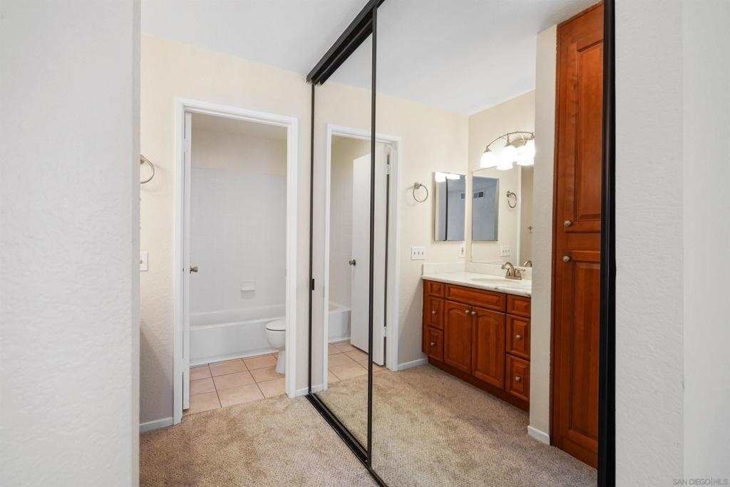 RARE Mira Mesa Heritage 1st level condo is for sale! Features new paint, hardwood floors, tile and newer carpet, remodeled kitchen with cabinets, granite and stainless steal appliances, recessed lights, 2 master bedrooms with en suite bathrooms, large patio with storage, an in-unit washer & dryer and great access to the pool, hot tub and plenty of street parking. Centrally located and minutes away from Mira Mesa Community Park, high school, shopping centers, the REC center, library, park and more. This one is not going to last!