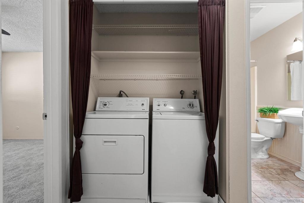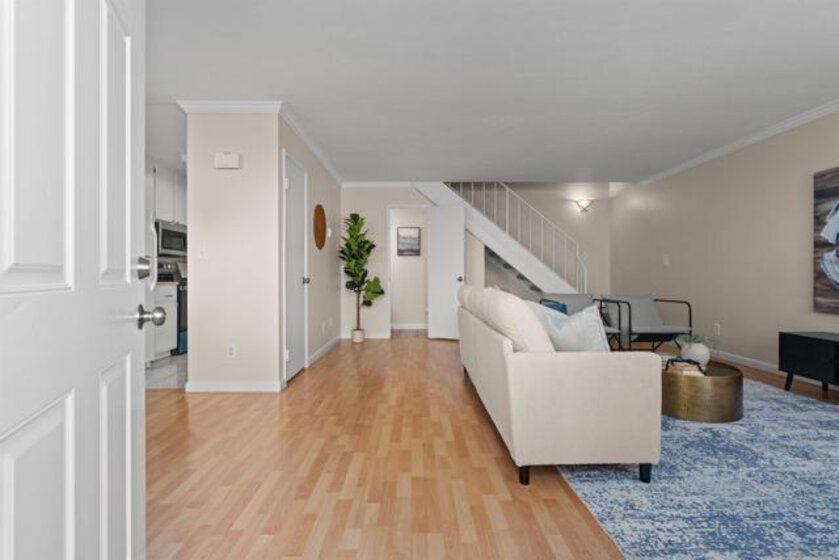 Welcome home to this light and bright 2BR/1.5BA residence in a brilliant community with a pool, located in the sought-after Poway Unified School District. Enjoy laminate wood floors, a spacious living room, crown molding downstairs, dual-pane windows, and a private patio with sliding door—perfect for relaxing. Includes in-unit washer & dryer, a spacious primary & secondary bedroom, and parking with 1 shared garage space + driveway. Conveniently close to Costco, shopping, dining, and quick access to I-15 & SR-56. A wonderful place to call home! This home offers a great blend of comfort and convenience with a functional floor plan, ideal for everyday living. The bright living space opens to a private patio for easy indoor-outdoor enjoyment. Upstairs you’ll find a generously sized primary bedroom plus a second bedroom—perfect for guests, a home office, or hobby room. Enjoy the peaceful community setting with mature landscaping and a refreshing pool, all while being just minutes from major shopping centers, restaurants, and commuter freeways.