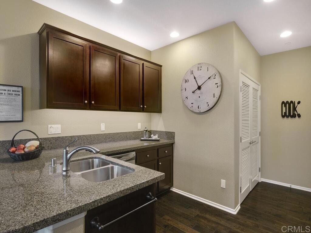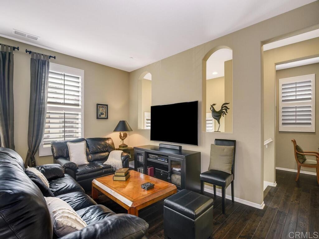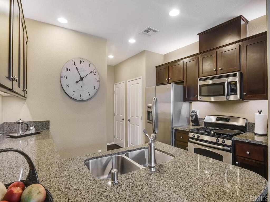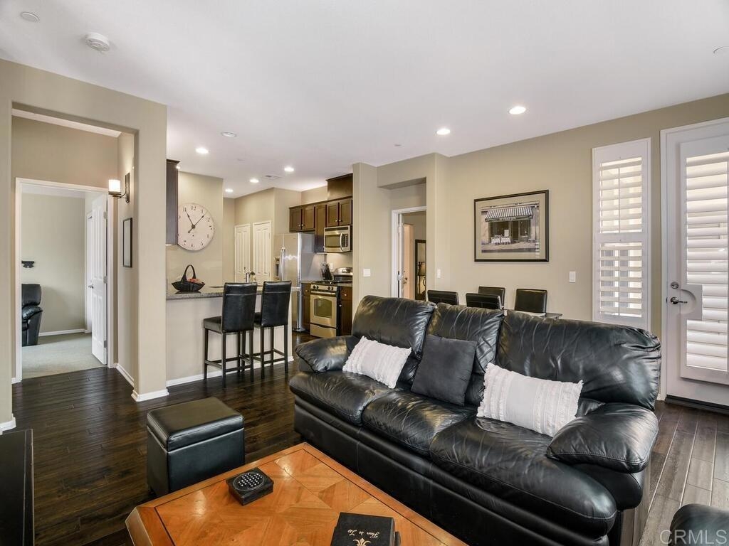 Highly desirable, rarely on the market, immaculately maintained townhome. Original owners chose the quietest location on the east side of the lovely community of Sorrento Terrace. Light and bright home features gorgeous espresso white oak hardwood floors, plush and luxurious carpet in the bedrooms and staircase, designer paint, granite countertops, stainless steel appliances, spacious laundry, plantation shutters throughout, and much more. Offering access to the community pool that’s almost like a private pool. Live, Work & Play within Sorrento Mesa with quick access to shopping, dining, entertainment, and more. Close to the tech park (Qualcomm, Dexcom, Apple, Google etc) Quick access to hiking, and biking trails, freeways, beaches, and public transportation. One car garage with plenty of storage attached and an additional parking spot included on the deed of the property. Welcome home!!!