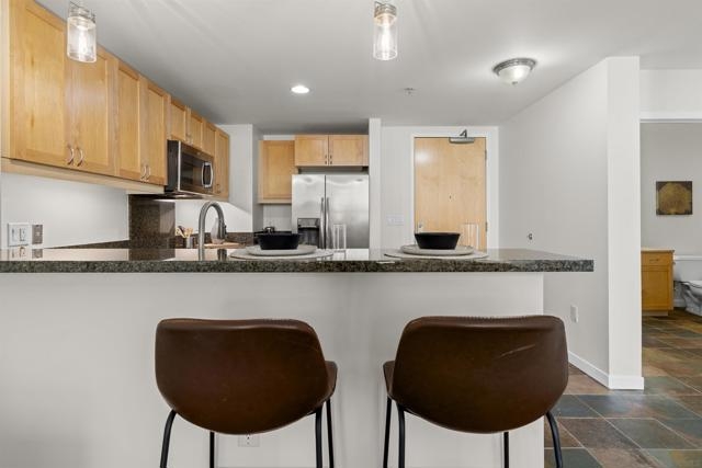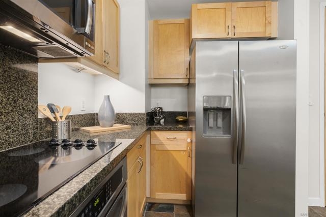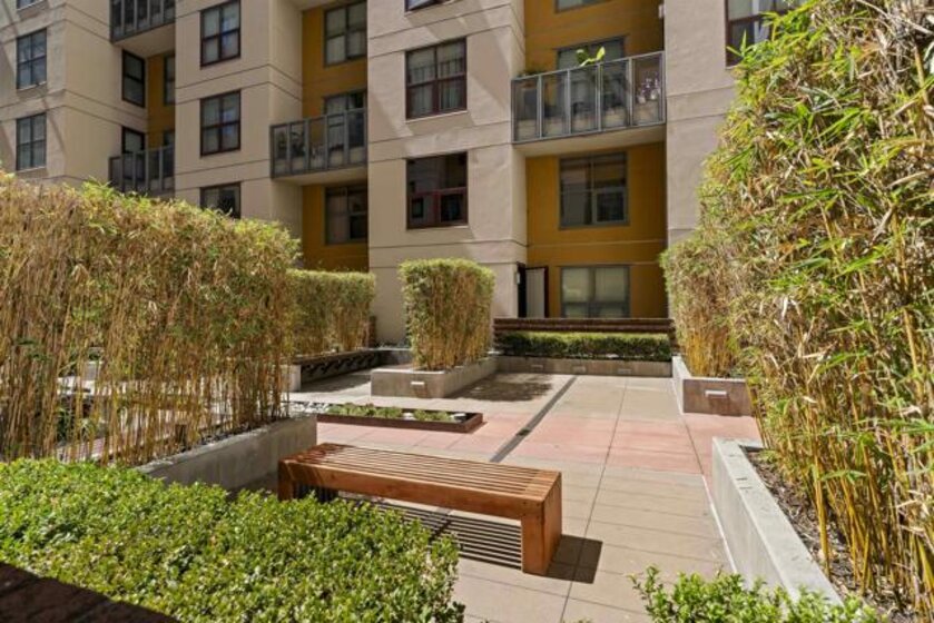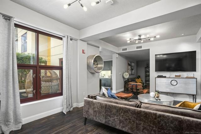 Charming Metrome residence with tranquil Zen Courtyard views and a spacious private patio. This one-bedroom home showcases engineered hardwood floors, fresh paint, ceiling fans in the living area and bedroom, plus a granite and stainless-steel kitchen with easy-to-maintain stone flooring. Perfectly located in Ballpark District, enjoy walkability to the Central Library, Petco Park, San Diego Bay, Gaslamp Quarter, and more. Community amenities include a fitness center, lounge, onsite security, and a serene courtyard with seating. Metrome in Ballpark District offers a prime Downtown San Diego location—steps from Petco Park, San Diego Bay, Gaslamp District, the Central Library, shops, and restaurants. Residents enjoy a Zen courtyard, fitness center, landscaped outdoor area with water feature, bike storage, secure entry, and a common lounge with kitchen. Experience the perfect blend of style, convenience, and community at Metrome!