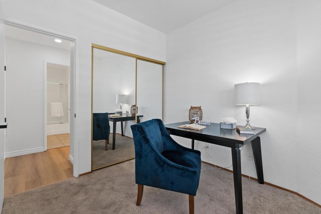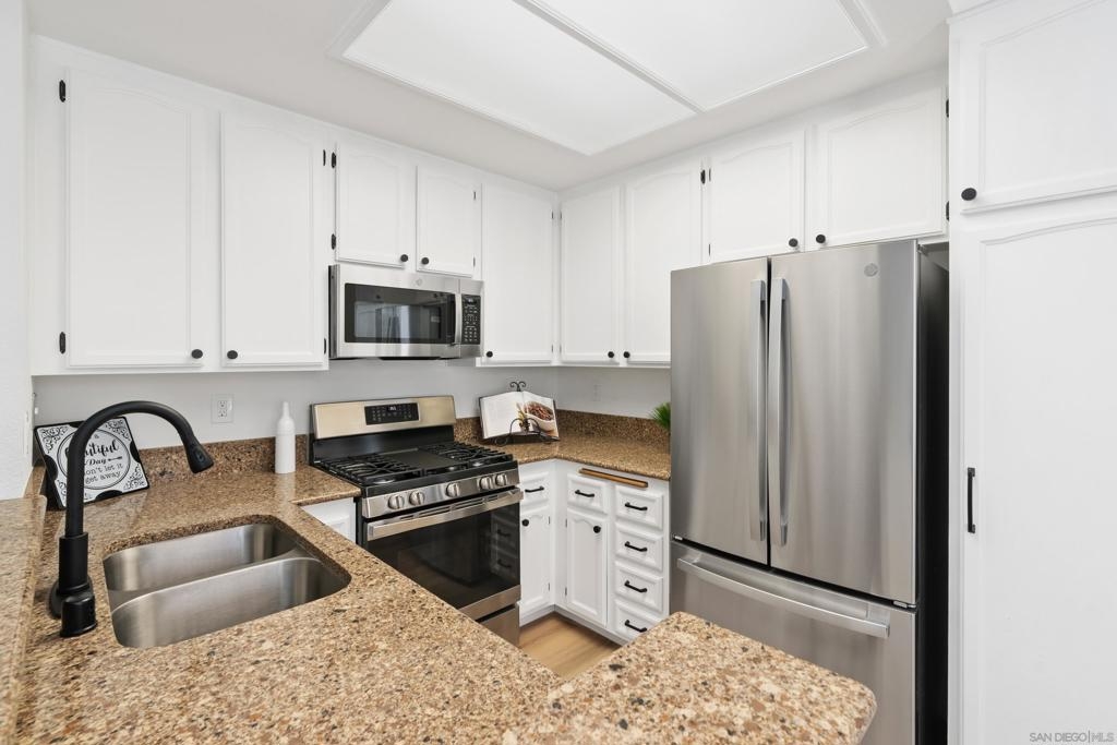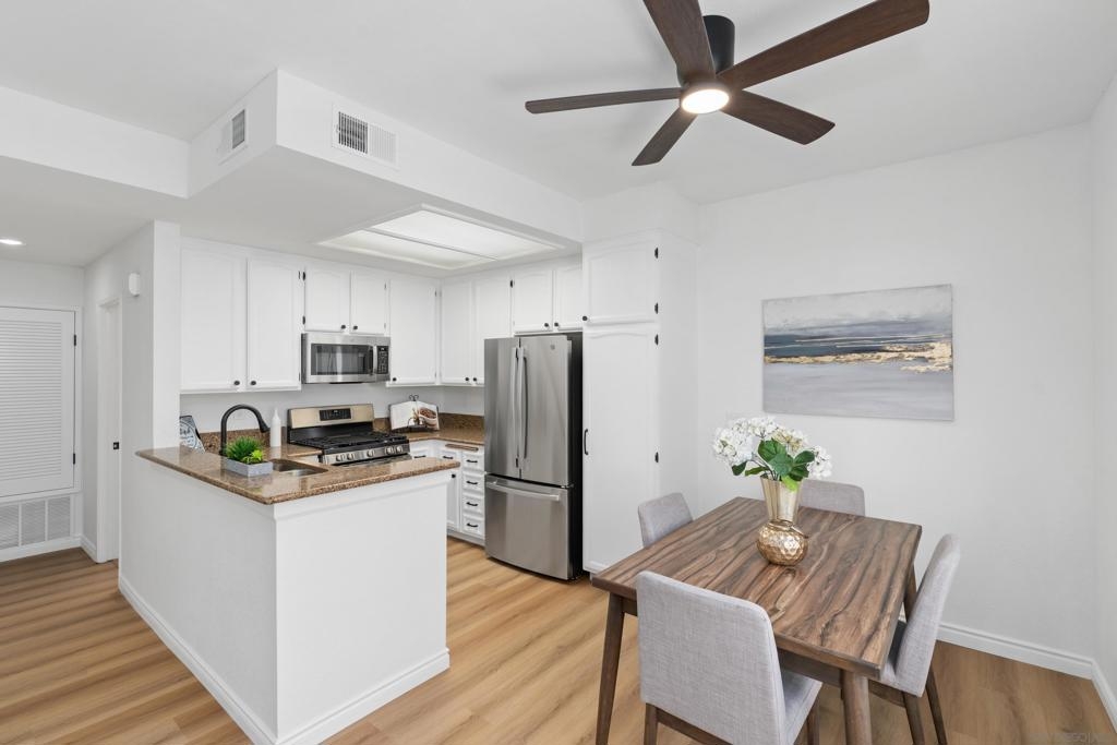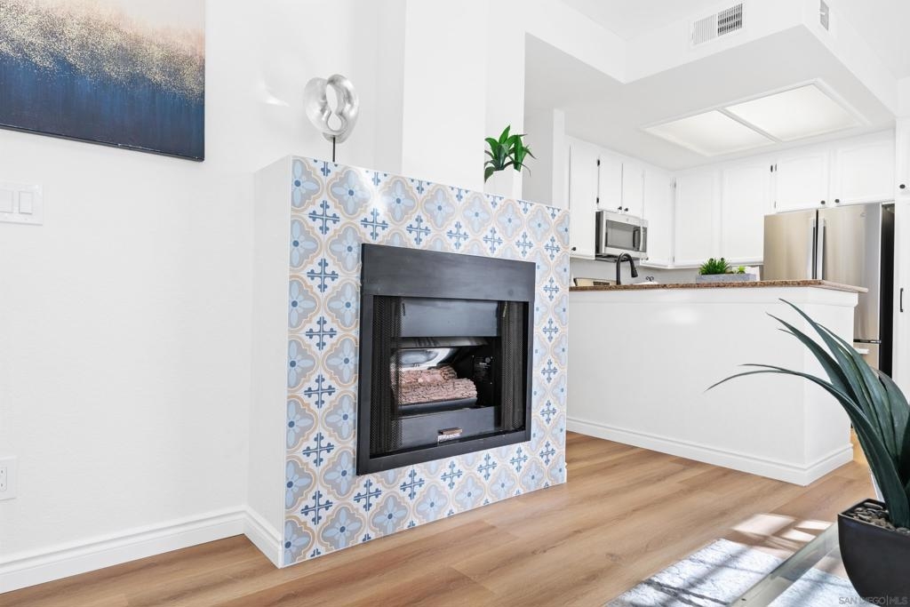 Newly remodeled sanctuary tucked away in a private northwest-facing pocket of Canyon Bluffs. Updated features include paint throughout, quartz counter tops, brand new stainless steel appliances including counter depth fridge with ice maker, luxury oak waterproof vinyl plank flooring, contemporary matte black hardware and fixtures and designer tile fireplace surround to enjoy. Wood louvered plantation shutters let the light in main living areas. Bedroom windows have park like views of mature trees and skies beyond the patio. Full sized laundry, large storage closet, plus more storage in front of dedicated parking conveniently located next to your building. Copper water supply lines were re-piped in 2019. A short garden like walk to the pool house, no need to cross the street to unwind. Family and friends have easy parking directly in front of your building with ample unmarked guest spaces! Perfectly level, with no steps from your car to the front door.Welcome home!