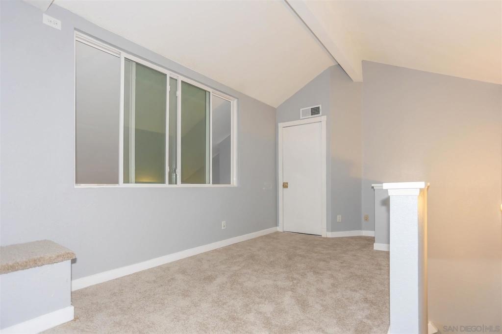 Fully upgraded quite, bright and airy upper unit in popular Canyon Bluffs complex in Sorrento Mesa location! Quartz countertop and newer Stainless Steel Appliances, Newer flooring, New washer and dryer. Perfect starter home or investment opportunity. Vaulted ceilings, fireplace, 2 bedrooms on entry level, Optional 3rd bedroom upstairs and additional loft area that makes a great office, play room, work out area. Unit has one assigned covered parking spot and plenty of street parking, complex features nice grassy quads and great pool area! HOA covers water and trash. Close to freeway/shopping. You will fall in love it. Complex Features: ,, Equipment: Washer Sewer: Public Sewer Topography: LL Frontage: Open Space
