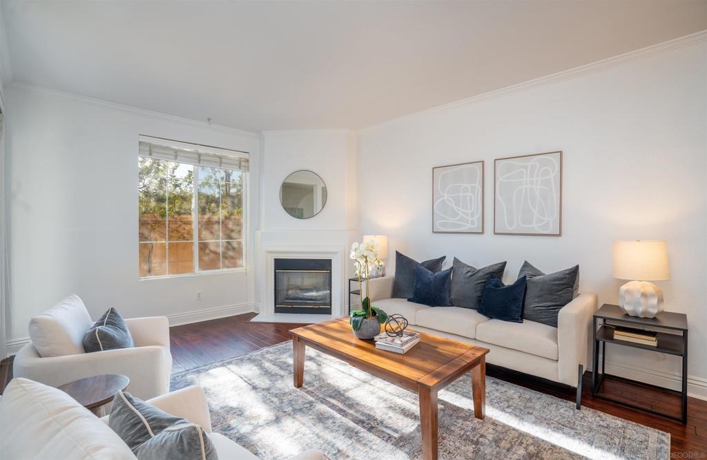 Location, location! This rare, ground-level, single-story corner condo is tucked into a quiet, private setting within the gated, resort-style Heights community in Carmel Valley. Freshly painted, light-filled, and thoughtfully updated, the open floor plan features two bedrooms and two baths, with upgraded wood flooring, new bedroom flooring, fresh interior paint, granite countertops, stainless steel appliances, and in-unit laundry. Expansive windows provide abundant natural light and refreshing cross-ventilation, while the living area opens to a private patio surrounded by greenery—perfect for indoor-outdoor living. Additional highlights include a detached single-car garage and an additional parking space. Residents enjoy resort-style amenities, including a pool, spa, fitness center, business center, and a fully equipped clubhouse ideal for entertaining. Ideally located within walking distance to shopping, dining, schools, parks, the rec center, and library, with easy access to beaches and major freeways, this move-in-ready home offers the perfect blend of comfort, convenience, and lifestyle.