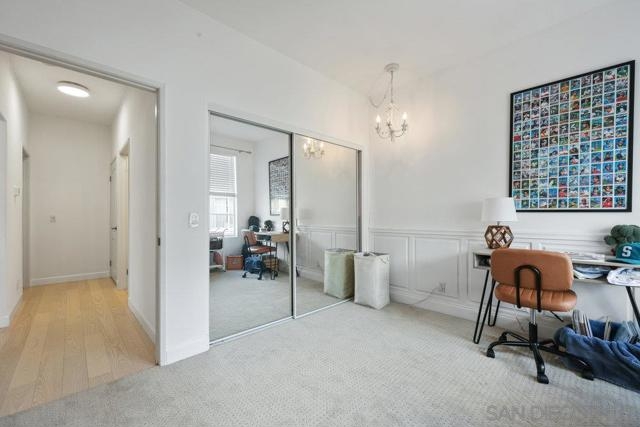 Spectacular UPPER LEVEL, 944 square foot, 2 bed/2 bath, END-UNIT in the highly sought-after Carmel Valley community of Camino Villas. Lovingly RENOVATED throughout (including AC and heater). The primary bathroom enjoys dual vanities and a enclosed walk-in shower. Also, the home comes with a newer refrigerator, full-size washer, and dryer. Huge sliding glass door window opens to a large private covered outdoor balcony, maximizing indoor/outdoor living. Great interior location far from El Camino Real and a short walk to the private swimming pool, spa, tennis court, and gym. Camino Villas is a lovely community that is centrally located in Carmel Valley, just a few minutes walk to wonderful restaurants and shopping (One Paseo and Del Mar Highlands Town Center), the public library, award-winning schools, parks, and a quiet walking trail. Also, the world famous beaches of Del Mar are less than 2 miles away!