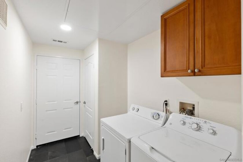 Location, Location! Don't miss this rarely available single story 3 bedroom/2 full bath in highly coveted Savannah Terrace! Premium ground level home with no stairs and absolutely move-in ready! Owners have taken pristine care. Fresh paint, beautiful wood floors, gas fireplace & stainless steel appliances. Central A/C & heat. Spacious outdoor patio with private storage closet. Split wooden shutters on each window. Immaculate 2 car garage with direct entry. In-unit laundry room. Huge walk-in closet in primary bedroom. Serene community & very quiet location. Ez freeway access and just steps from eateries & markets. Very low HOA dues. Wonderful amenities include mile-long meandering walking path, resort-style pool & hot tub, fitness center, sauna, BBQ area, clubhouse, tennis courts and basketball area (both courts are well lit at night!). Located within the award-winning Poway Unified School district. One of the most desirable communities in Sabre Springs. Love where you live!!