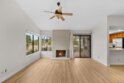 SURE TO PLEASE! OPEN, AIRY, LITE AND BRIGHT, TWO BEDROOM PLUS DEN/OFFICE END UNIT WITH HUGE NORTH VIEWS. BRAND NEW SWISS CREAM INTERIOR DECOR AND STYLE. FEATURES ELEGANT, NEW DESIGNER VINYL PLANK FLOORING/BASEBOARDS THROUGH OUT. LIGHTLY USED, LARGE AND FUNCTIONAL OAK KITCHEN W GRANITE COUNTERS, STAINLESS STEEL, BUILT-INS. SIZABLE MASTER SUITE W LARGE, SHELVED WALK-IN. EXPANSIVE CATHEDRAL CEILINGS, SKYLIGHTS, CEILING FANS. TWO PRIVATE PATIOS, LARGE MAIN WITH MOUNTAIN VISTA. HOME EXUDES A MODERN AND INVITING ATMOSPHERE. DELIGHTFUL, FRIENDLY COMMUNITY, GOLF, RECREATION CENTER, EXERCISE ROOM, POOL, SPA, TENNIS, PICKLEBALL, LAWN BOWLING AND MUCH MORE.
