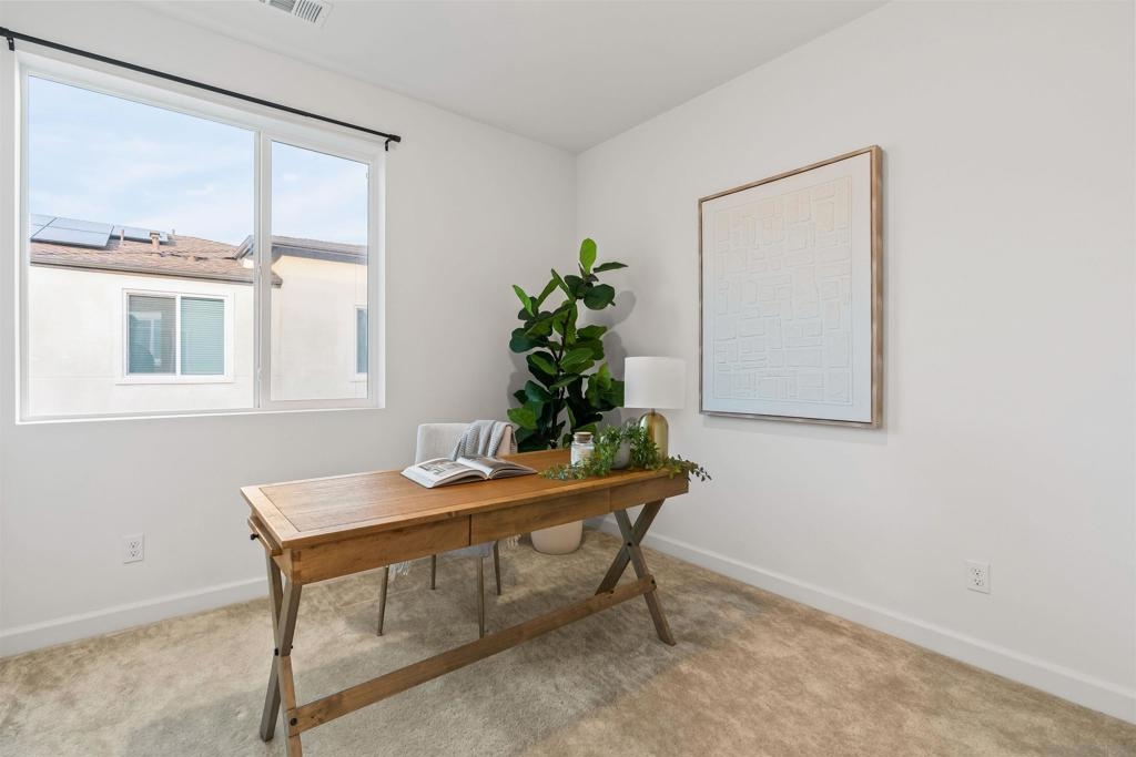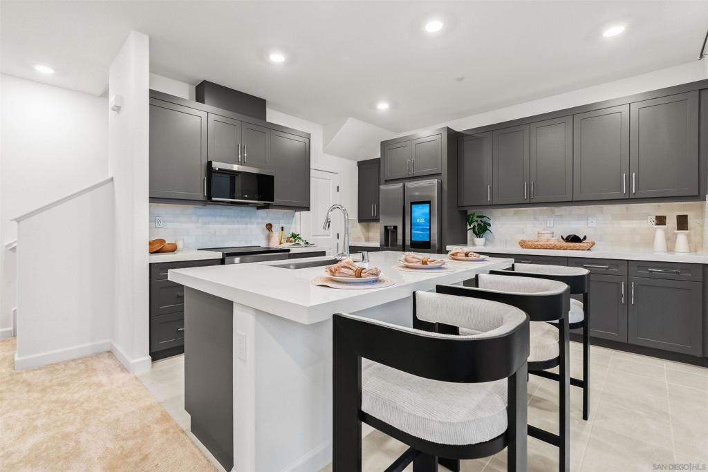 Welcome to 14138 Jonah Way, a rare corner-unit townhome in the sold-out Lavendar Residence 2 at The Trails in Carmel Mountain Ranch. This 2-bedroom, 2.5-bath home offers 1,209 sq ft of modern, energy-efficient living. Features include fully paid solar, a ChargePoint EV car charger, two-car side-by-side garage, and a private patio. The open main level is bright and functional with smart home features and quality finishes throughout. Upstairs, both bedrooms feature en-suite bathrooms, providing privacy and flexibility. Residents of The Trails enjoy resort-style amenities including a swimming pool, parks, playground, dog park, basketball court, pickleball courts, BBQ areas, and scenic walking trails. Ideally located near shopping, dining, major freeways, and within the Poway Unified School District, this home offers a rare opportunity to own a sold-out model in a highly desirable Carmel Mountain Ranch community.