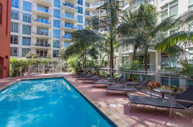 Don't miss this turn-key opportunity! The best location in Little Italy goes a step further. This property provides seamless access to the award-winning courtyard, pool, spa, and downtown amenities without ever having to enter the main building. Enjoy your own Lanai overlooking the tropical waterfalls. Completely upgraded! Too much to list. Hard surface flooring, LED lighting, ceiling fans, extra outlets, wardrobe organizer and doors, blackout blinds, upgraded kitchen appliances, European style cabinets, full backsplash, LG W/D, and arguably best parking in building. SEE THE VIRTUAL TOUR! Location Location Location....Being set between Little Italy; and the Waterfront provides the ultimate walk-ability score. Breeza possesses a true community feel and "casual elegance" Spectacular views occur throughout the building without having to be positioned high in the tower. Proud winner of landscape awards; Breeza features resort like amenities including roof top terrace with stunning views, heated pool and spa, community room, exercise room, common area wi-fi, business center and on-site professional management. *Room Measurements to be confirmed by Buyer.