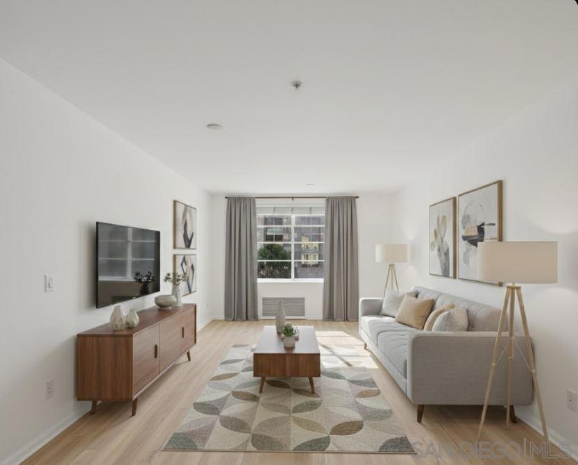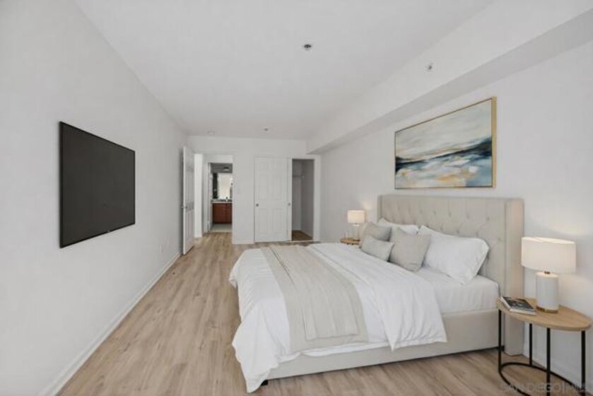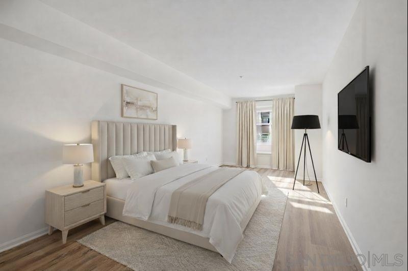 Live in the heart of Little Italy, one of San Diego’s most vibrant and walkable neighborhoods. Step outside your door and stroll to boutique shopping, incredible dining, the Saturday Farmers Market, the train and trolley, downtown, and even Balboa Park. This coveted location blends urban convenience with the charm and energy that makes Little Italy so desirable. Inside, this fourth-floor condo sits in an ideal southwest position, inviting in the best natural light throughout the day. The spacious bedroom offers plenty of room for a home office, and the unit includes a full-size washer and dryer for effortless living. The building features a charming shared courtyard with a BBQ area on the 2nd floor right off the elevator, perfect for relaxing or entertaining, along with a gated, secure parking space. With lower HOA's for the area and immaculate upkeep, this home is the perfect blend of comfort, style, and unbeatable location.