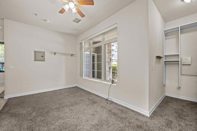Urban living at its best in this one-bedroom corner residence at Union Square. This walk-up unit features high ceilings, oversized windows, and an open kitchen with granite countertops, gas range, and under-cabinet lighting. Enjoy a spacious bedroom with a walk-in closet and convenient in-unit stackable washer and dryer. Just steps to dining, culture, freeway access, and Petco Park—perfect for a downtown retreat.